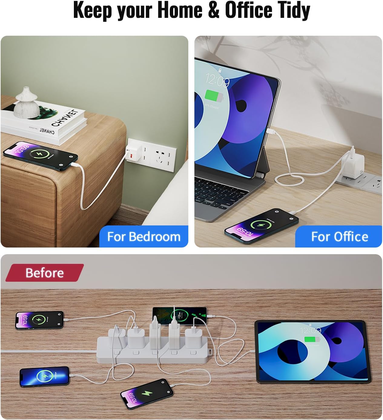 [Easy to carry and use] The retractable wall charger usb c fast charge is foldable and smaller than the traditional charger,it can save more space and convenient to use. Perfect for travel, bedroom storage, kitchen safe charging, office working.