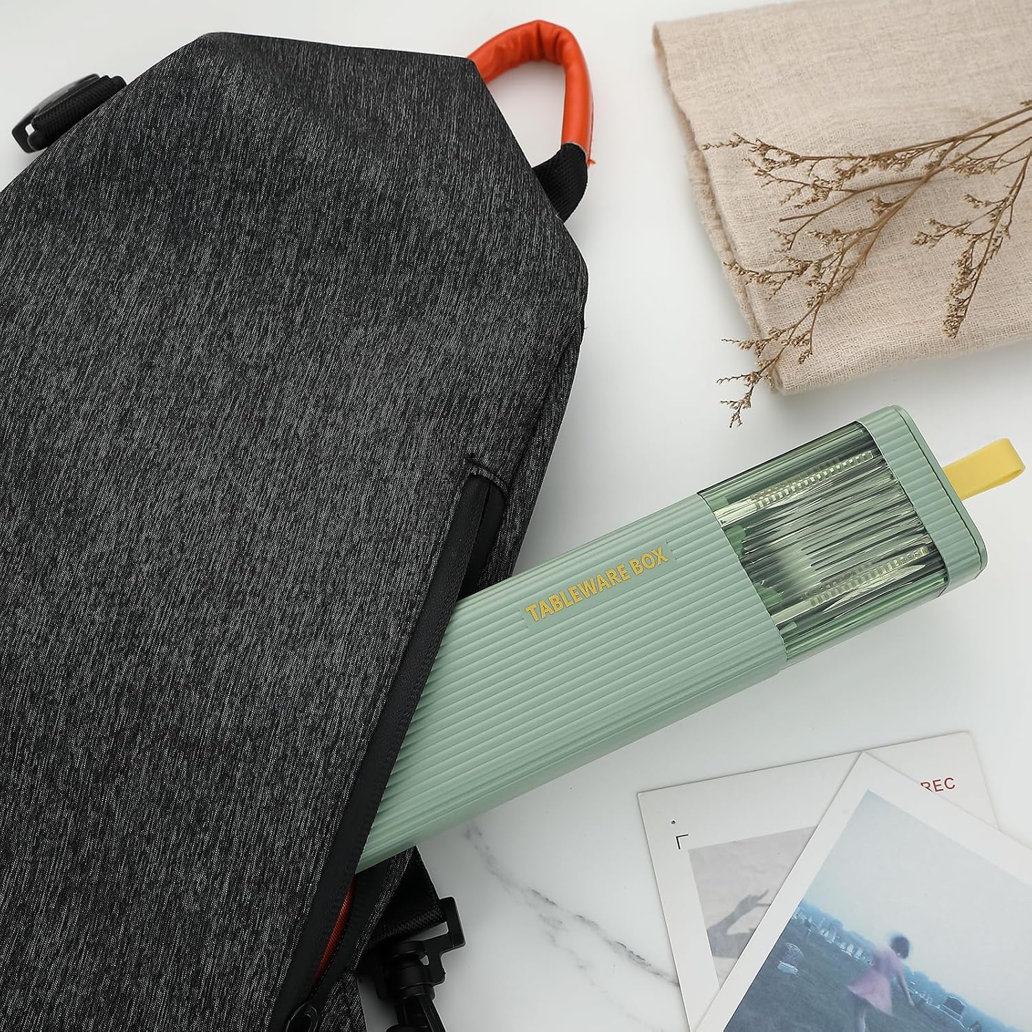 Specially designed silverware case with size-7.6*1.9*0.9in, smaller than many others. New kind of embedded buckle, lock the reusable silverware without shaking and reduce noise.