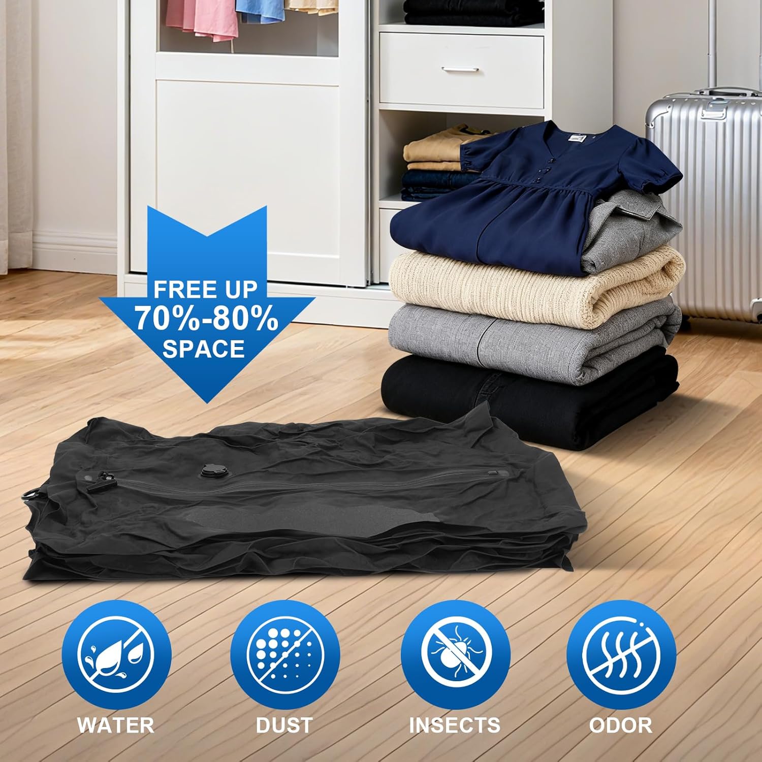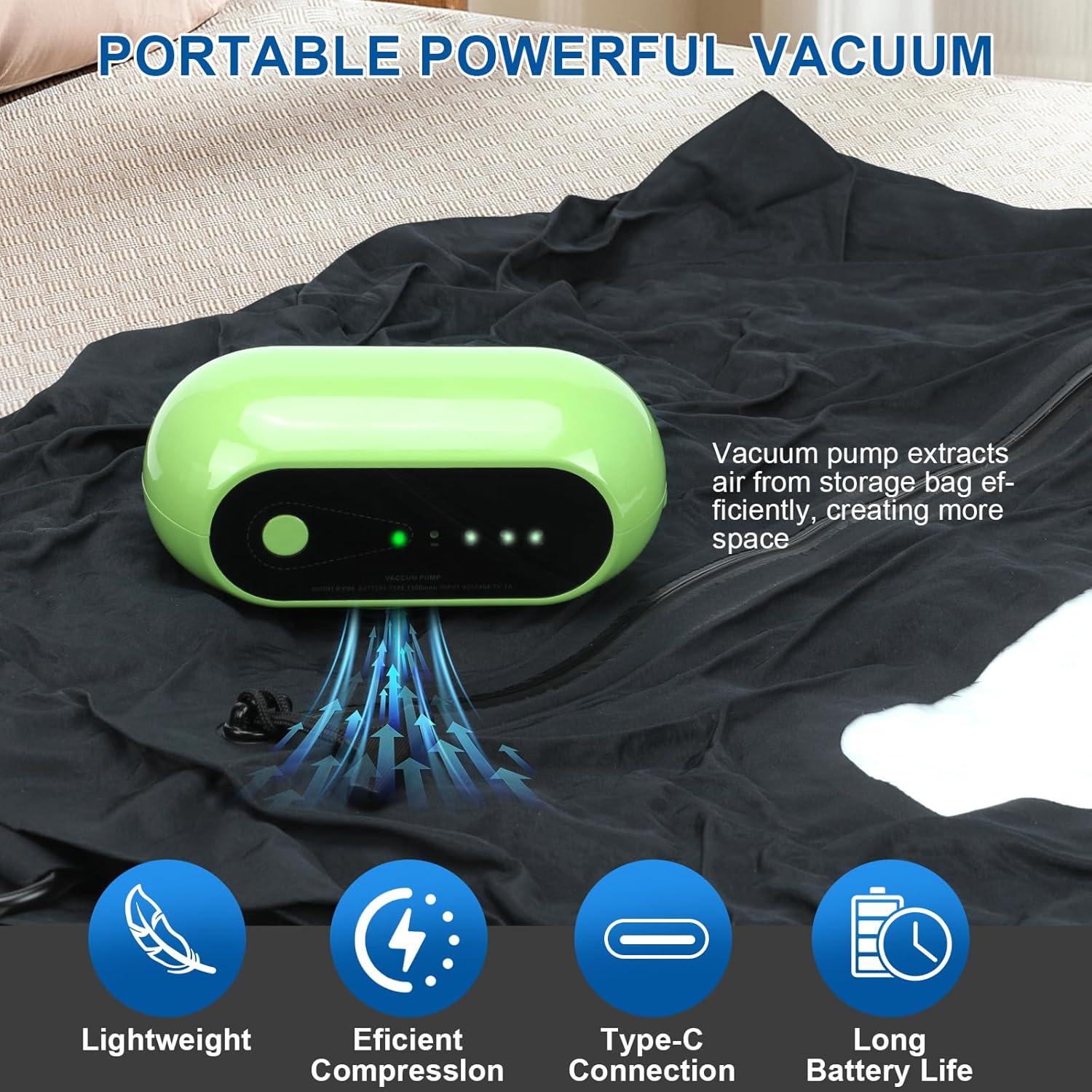 【Vacuum Packing Bags for Travel】 Upgraded vacuum kit ensure negative pressure value >-40Kpa (45% stronger than market vacuum pump) slashes bulk by 60% at least. The upgraded 1×2-inch, 5-ounce wireless pump features a quick-connect valve, powered by USB-C charging.A full charge can be used at least 50 times, no manual labor required! Enjoy efficient, hassle-free packing and unpacking wherever your journey takes you.
