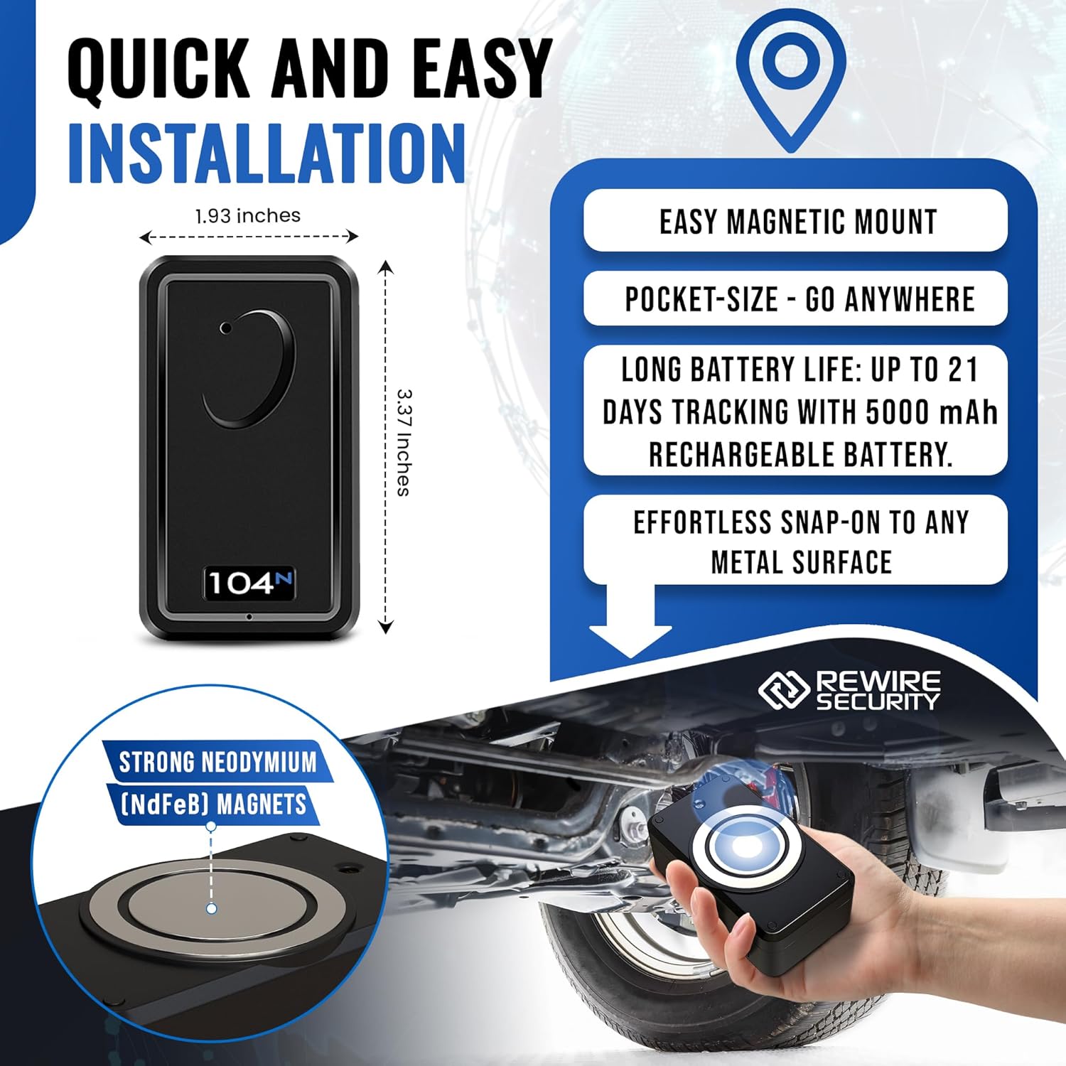 TOOL-FREE MAGNETIC INSTALL: Built-in magnetic base for simple, discreet mounting on any metal surface, perfect as a car tracker device hidden from view or a mini GPS tracker for vehicles.