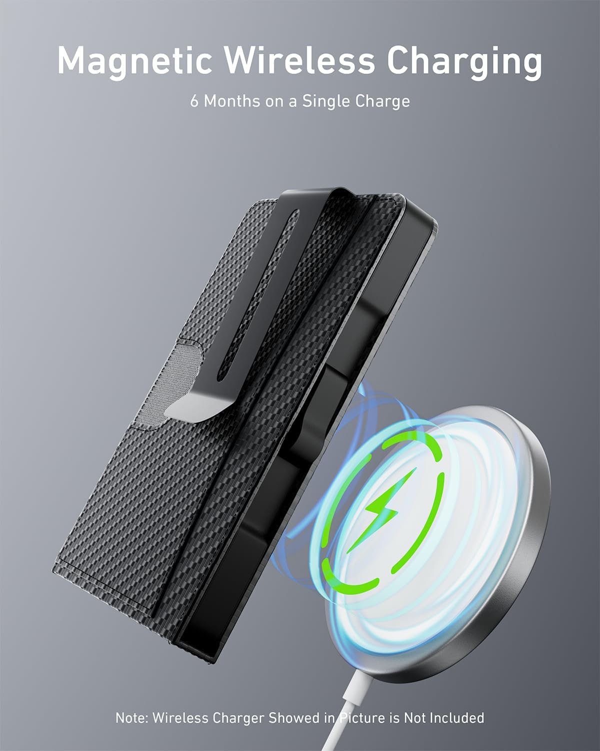 Only Charge Twice a Year: The HomeTix smart wallet can be rechargeable via magsafe wireless charging, fully charged in 1.5 hours can lasts up to 180 Days, so you don’t have to worry about charging every week. (Note: wireless charger not included)
