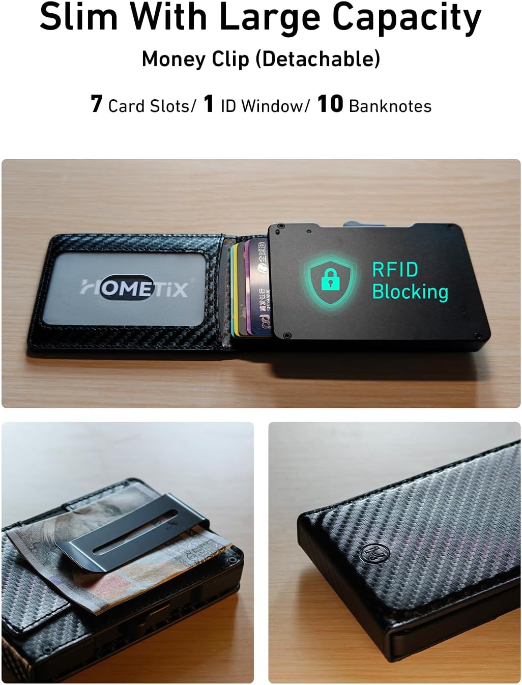 Slim & Affordable: Features 1 clear ID windows for driver’s license or ID, 8-10 credit cards, removable money clip for 10bills. The tracker wallet costs 35% less than buying a separate AirTag + AirTag wallet, and 20% thinner, no bulky, just secure minimalism