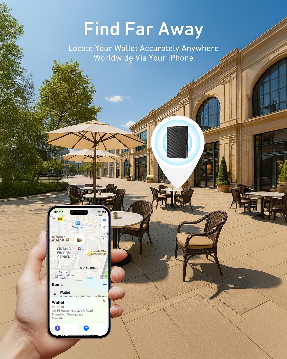 Works with Apple Find My: No extra Airtag Needed.The built-in trackable wallet with Apple-certified Find My functionality(iOS 14.5 Above Only), locate the wallet on a map, play a sound, or mark it as lost. (All communication is anonymous and does not store location data)