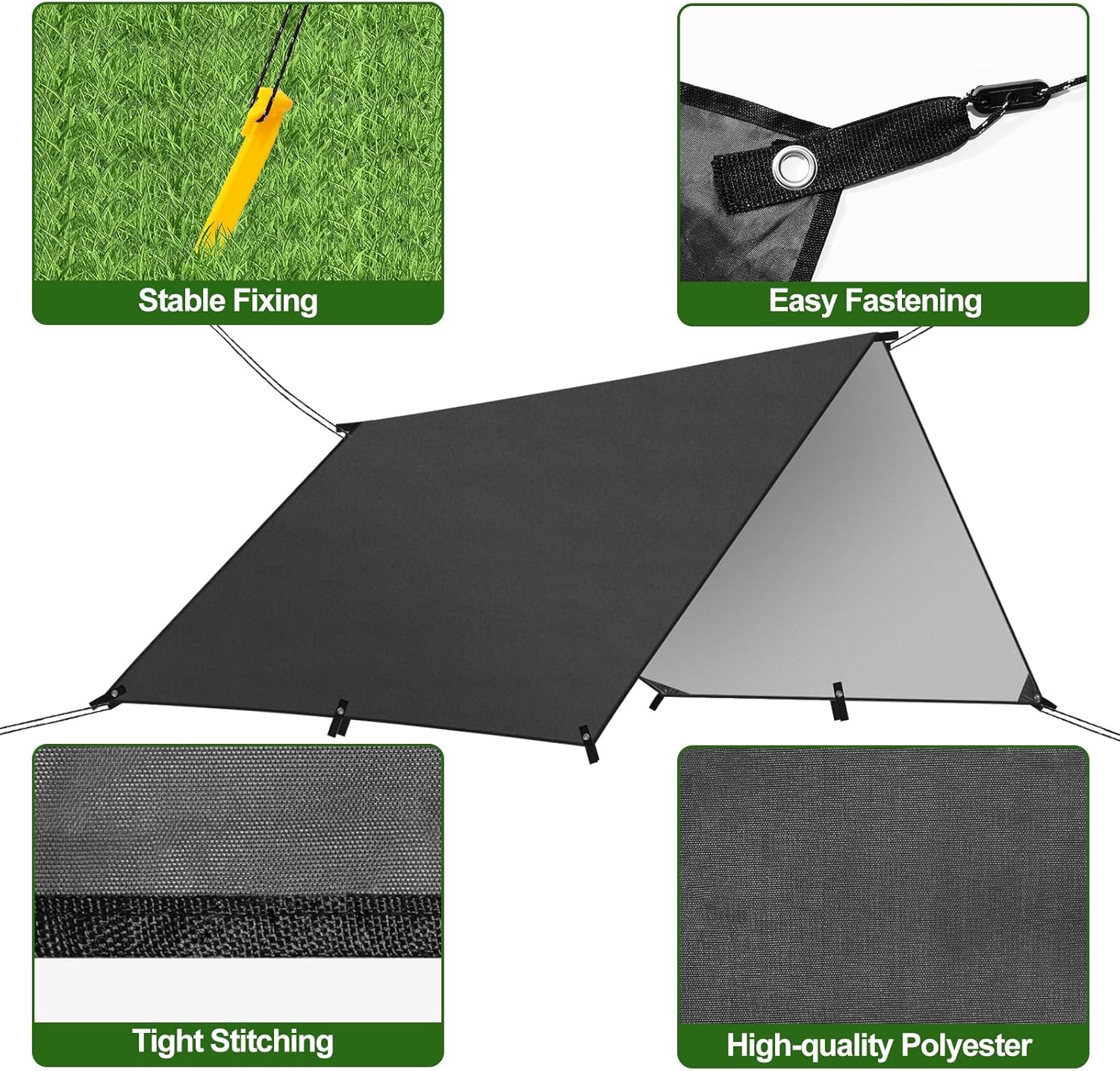 Sunshade Tent: The hammock rain fly is covered with a sunscreen coating that provides protection from the sun and rain. Featuring 3mx3m/9.8ftx9.8ft, it can accommodate 2-3 people to use.