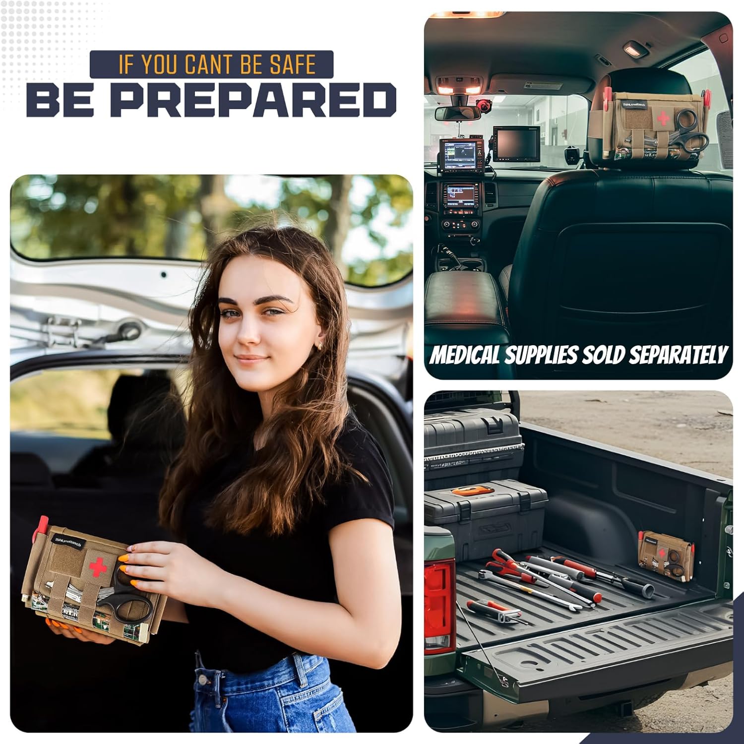 Compact Versatility: Product includes headrest mount, slide in insert, and red cross patch. NO MEDICAL SUPPLIES ARE INCLUDED; this makes it perfect to customize the medical portion to your personal needs, whether it be an emergency trauma kit or simple first aid supplies; this kit is ready to respond at a moment’s notice.