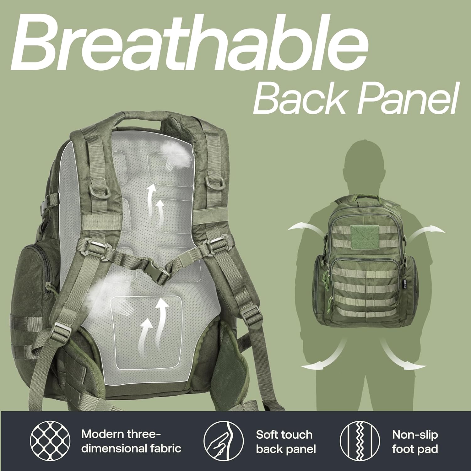 Adjustable and Comfortable: Padded shoulder straps, compression chest straps, and a hip belt offer a comfortable fit for all body shapes, ensuring convenience during long-distance trips with the backpacks tactical.