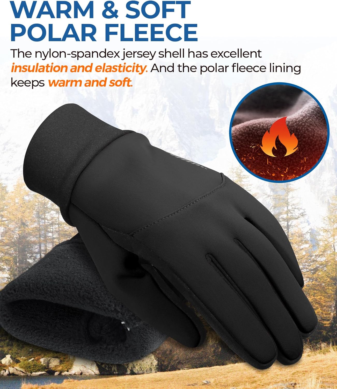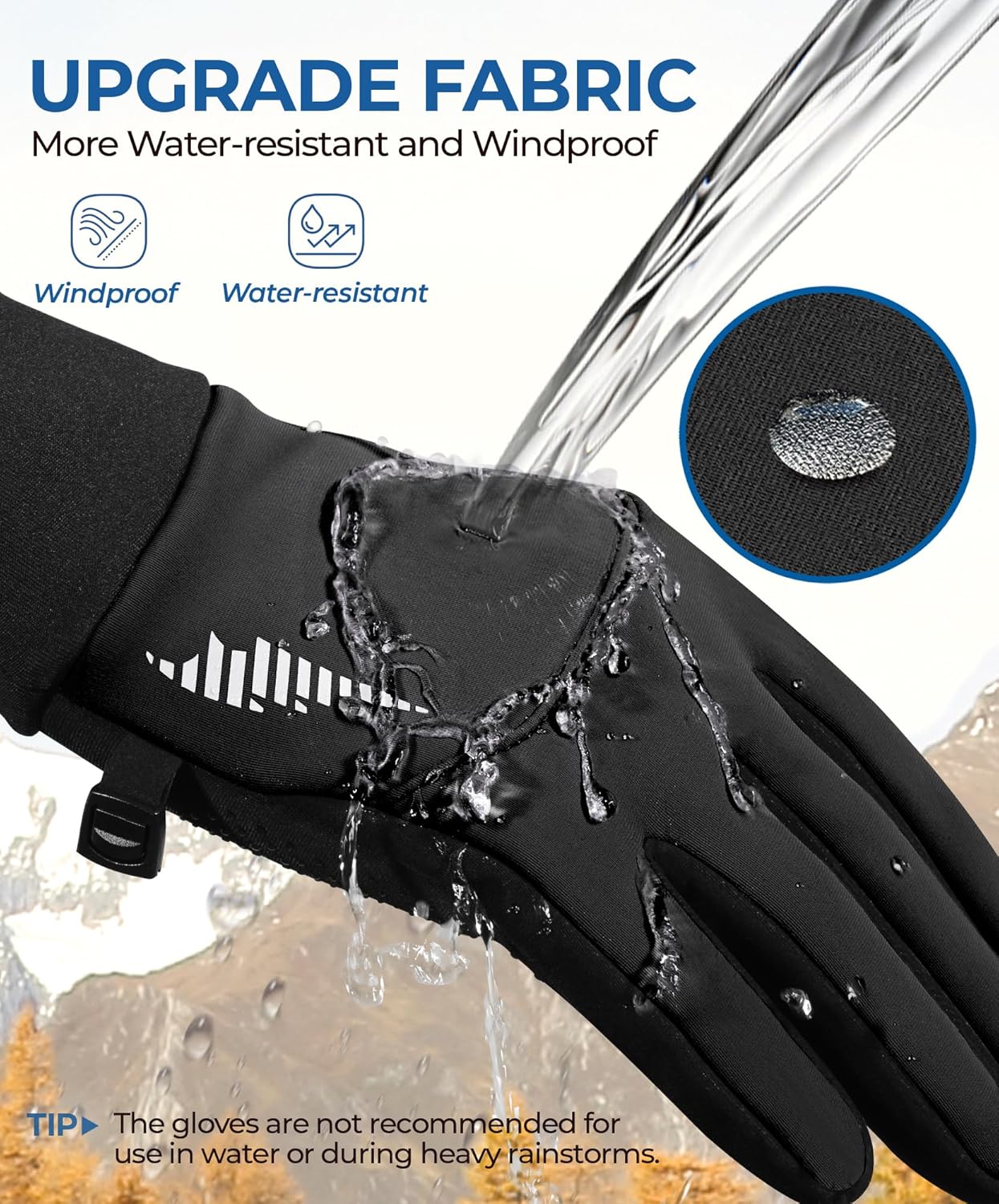 【Water-resistant Windproof】 The thermal gloves feature a waterproof layer between the outer shell and the fleece lining, which protects your hands from water splashes and cold winds. This keeps your hands dry and warm outdoors.