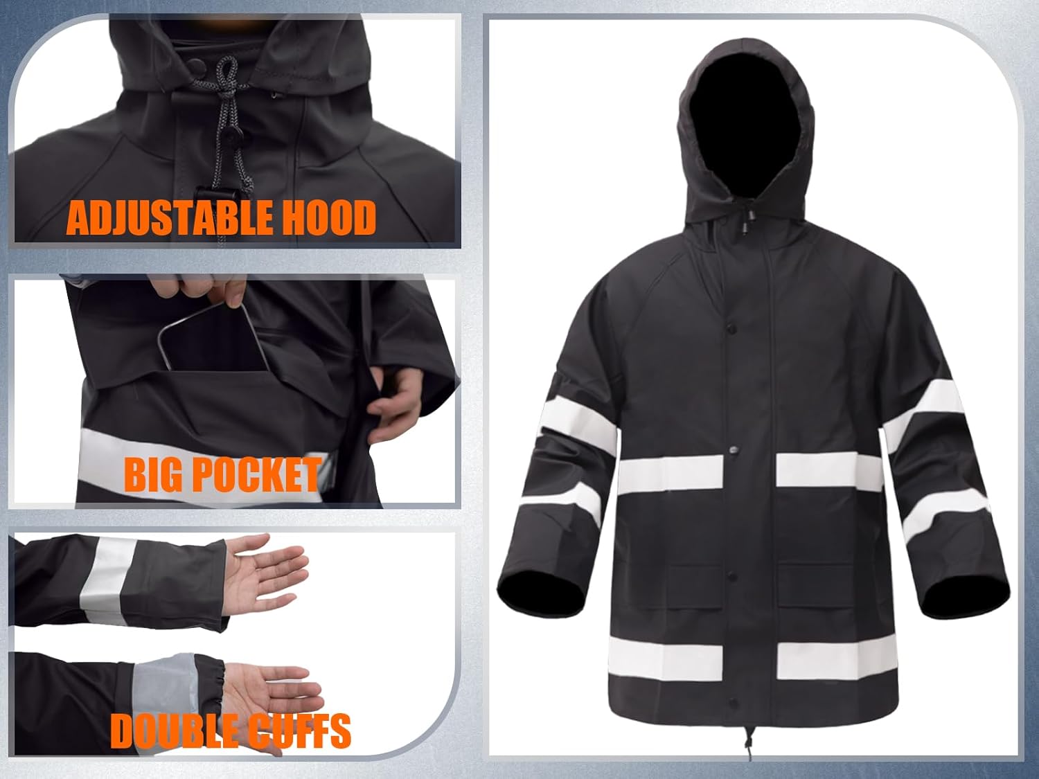 Our rainwear is crafted from durable PVC and PU materials, rigorously tested to withstand the heaviest rains. With features like adjustable hoods, reinforced seams, and breathable linings, we’re built for real life—rain or shine.