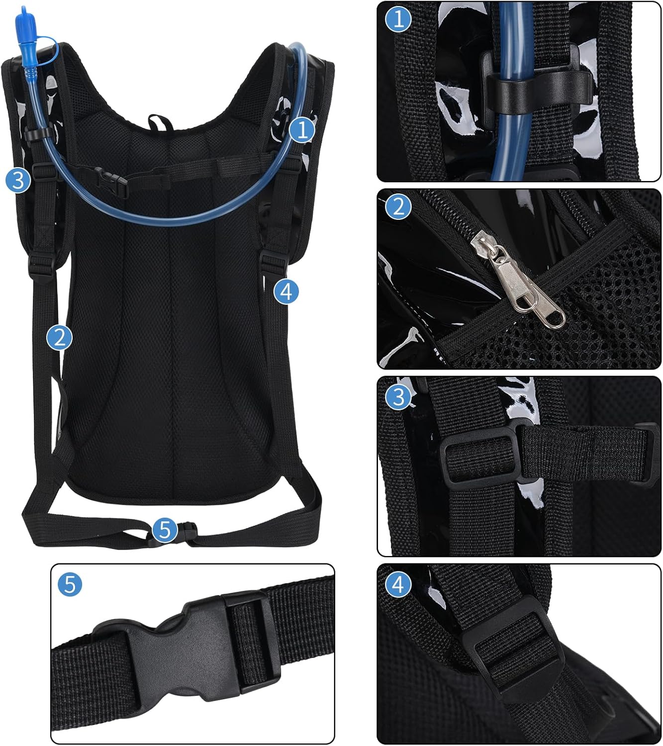 【BPA FREE hydration bladder 70 Ounce-2 Liter】Included 2L leakproof and stability hydration bladder,complete with soft high flow bite mouthpiece with easily accessible on/off,valve BPA FREE food grade,test report will be sent to your e-mail.the size of water bladder is perfect offer a nice balance of reasonable weight and bulk while providing a sufficient quantity of water.