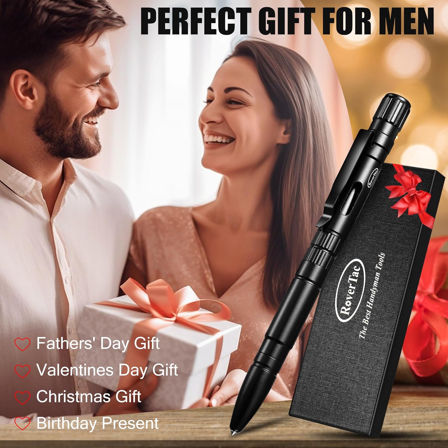 Elevate your gifting game with the RoverTac 5-in-1 Multitool Pen—the ideal present for men, dads, husbands, and handymen. Packaged in an elegant gift box, it’s a smart choice for Christmas stockings, Father’s Day surprises, or a memorable birthday treat.