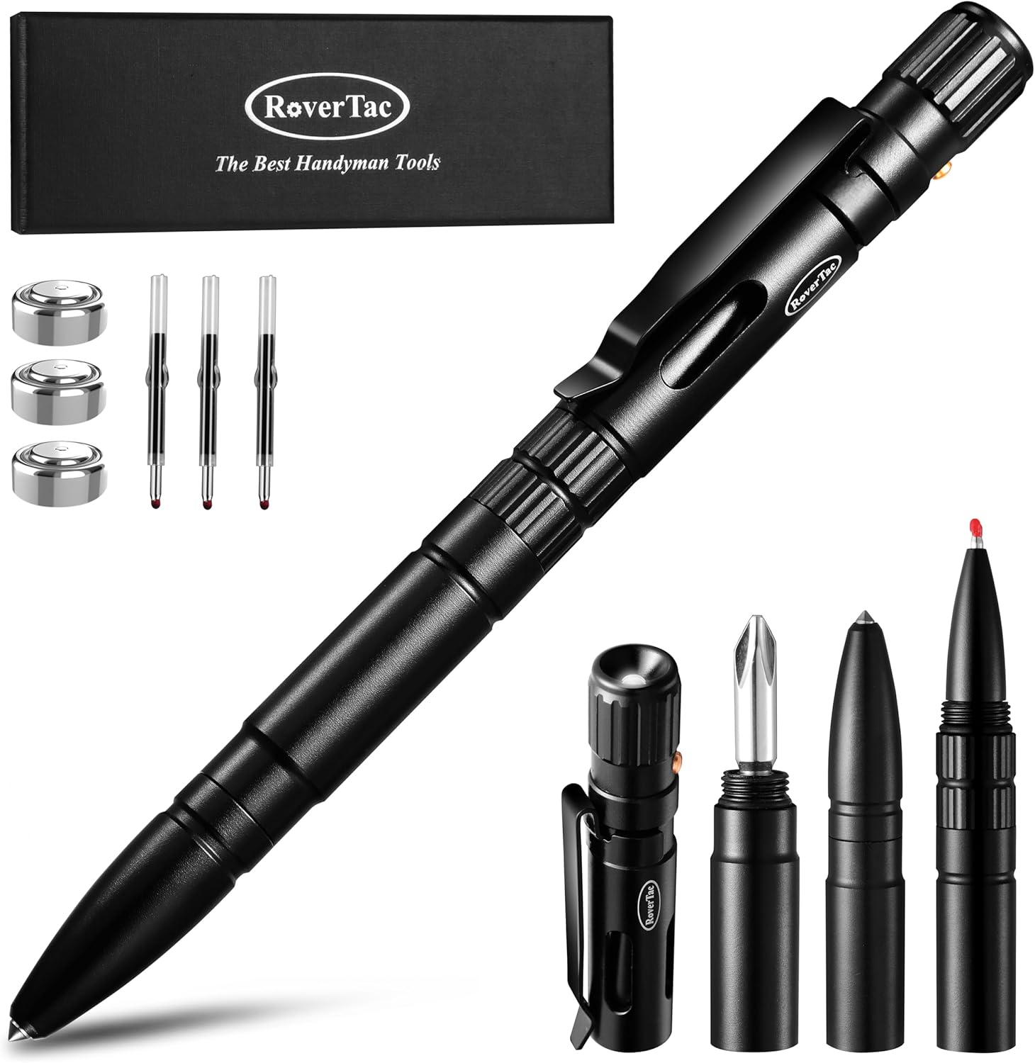 RoverTac Multitool Pen, 5-in-1 Multi Tool Pen with Ballpoint Pen, LED Light, Glass Breaker, Whistle & Phillips Screwdrivers Premium Gift Box, Perfect for Mens Gifts Dad Gift Christmas Gifts
