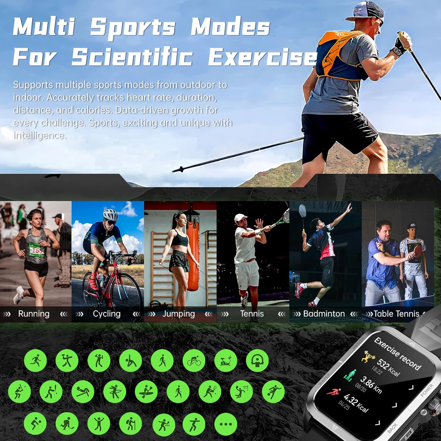 ▶IP68 Fitness Tracker & 100 Sport Modes — The smart watch for android iPhone compatible accurately measures steps, distance, and calories burned. With support for 100 different sports modes including running, cycling, badminton, and hiking, it provides a comprehensive overview of your daily activities. Designed for men, this fitness tracker is IP68 waterproof, making it suitable for outdoor use, rainy weather, and even when washing hands.