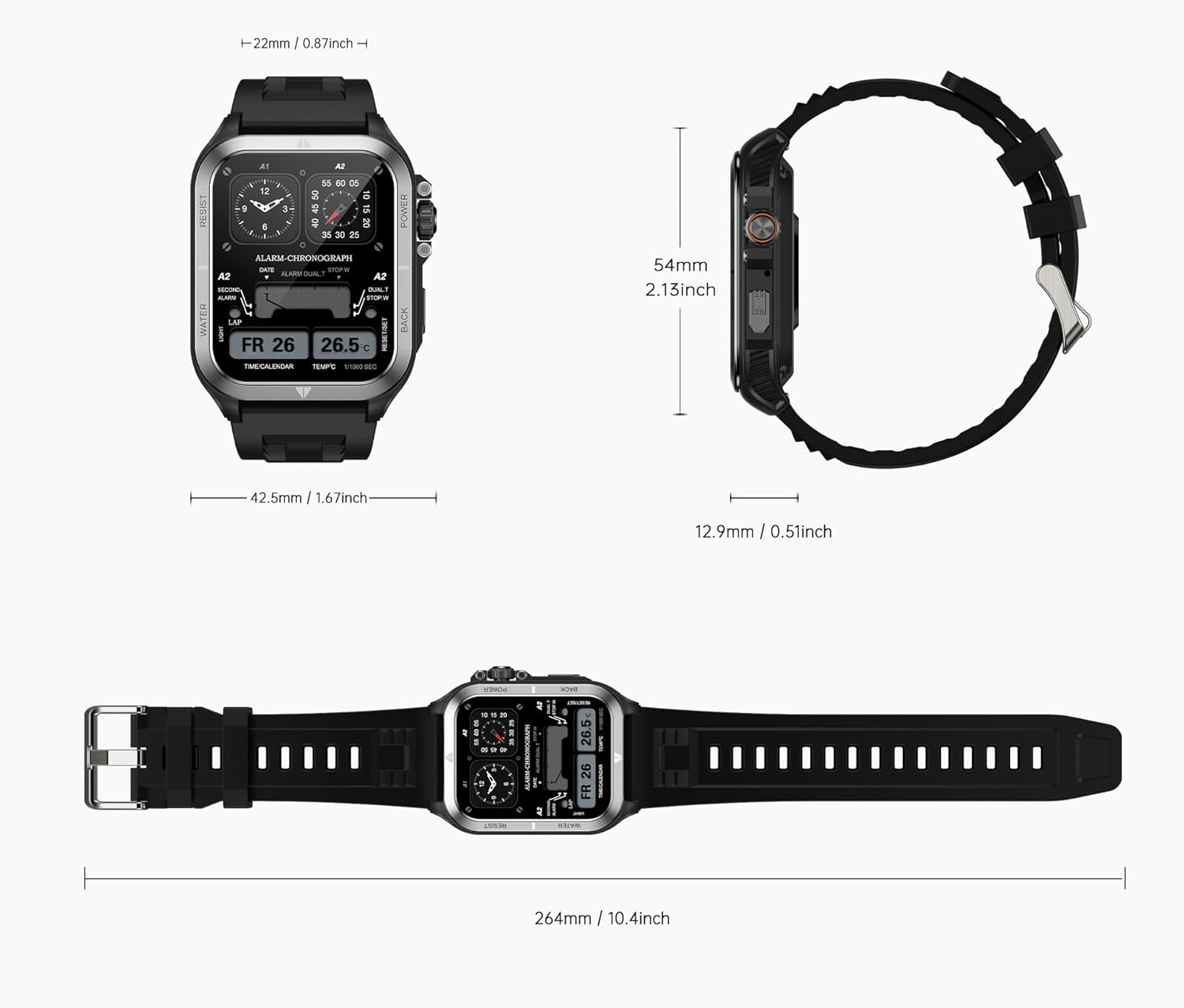 ▶Rugged Iphone & Android Smart Watch — Built in high-quality speakers, supporting Bluetooth calling. Easy to answer/make phone calls, receive SMS, social media notifications (such as WhatsApp, Facebook), and synchronize with music control and AI voice assistant. The AI voice assistant supports voice control, allowing you to perform tasks on your smartwatch using voice commands, completely hands-free.