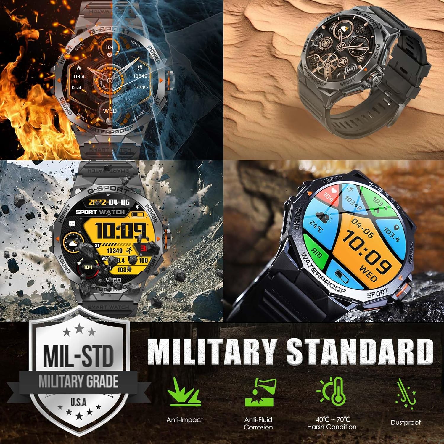[Military Standard]: Men’s military smartwatch is made of high quality material, excellent workmanship and comes with a silicone strap that can be used for a long time without being easily worn out, durable design suitable for use in a variety of environments. Outdoor tactical smartwatch has been tested to withstand extreme temperatures and lots of dust, 3ATM waterproof rating can meet the needs of most outdoor enthusiasts, it can resist sweat and rain, it is your outdoor adventure partner.