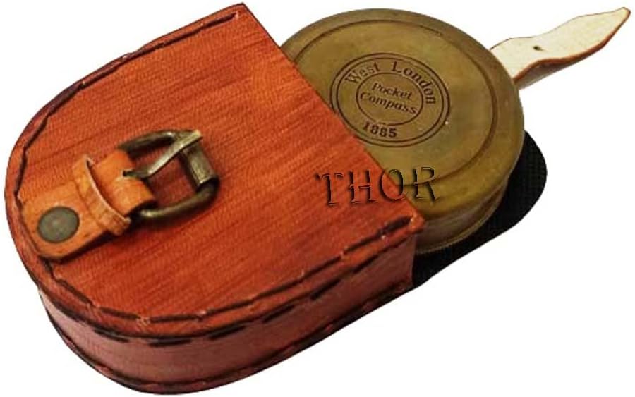 Authentic Vintage Style Brass Pocket Compass With Leather CaseFinish : Antique BrassCompass Size : 2.5 InchesCase Size : 3 InchesPrimary Material : Brass