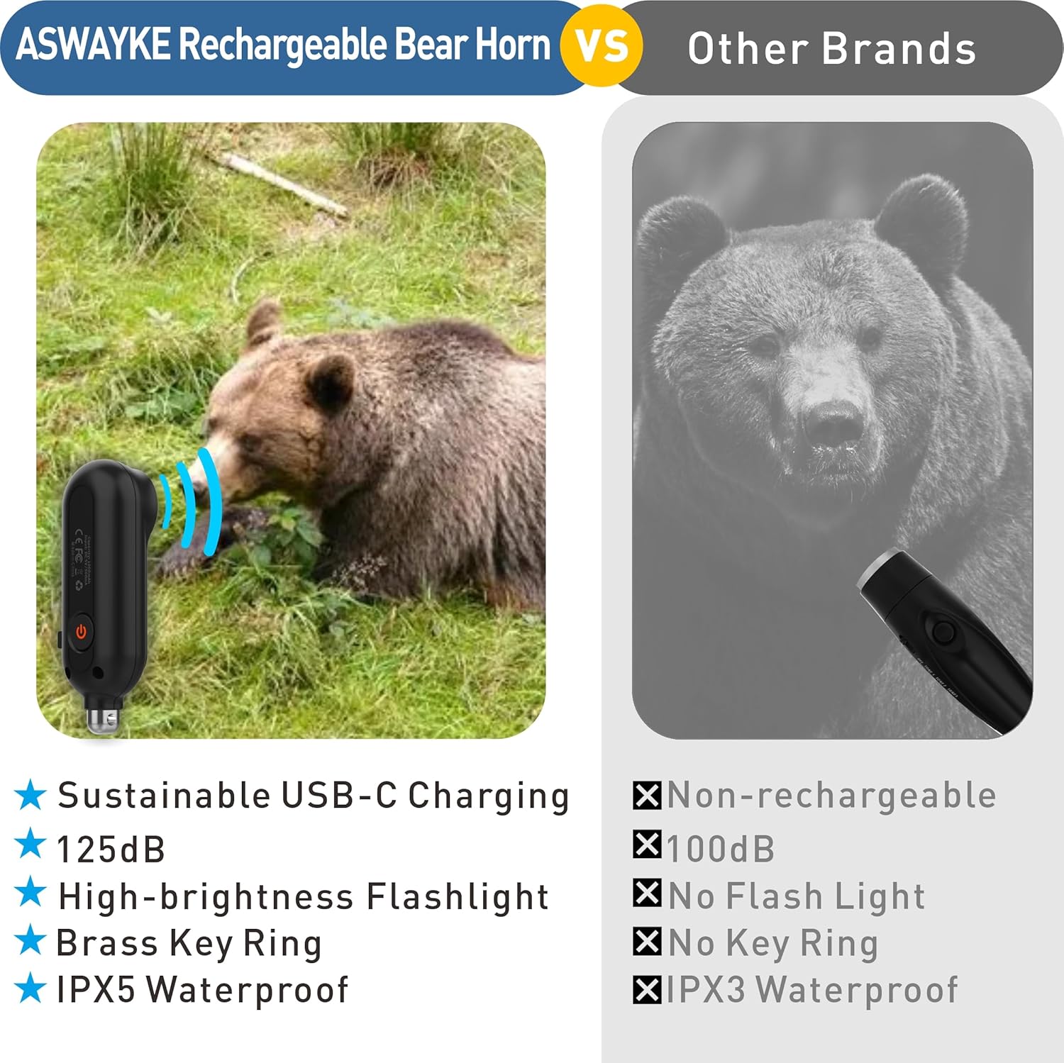 【Compact & Ready Defense】This essential Bear Horn is lightweight and pocket-sized, featuring a keychain clip for instant access on your pack or belt during hiking and camping outings. When bears approach, deploy it swiftly to scare them away, ensuring ultimate outdoor safety.