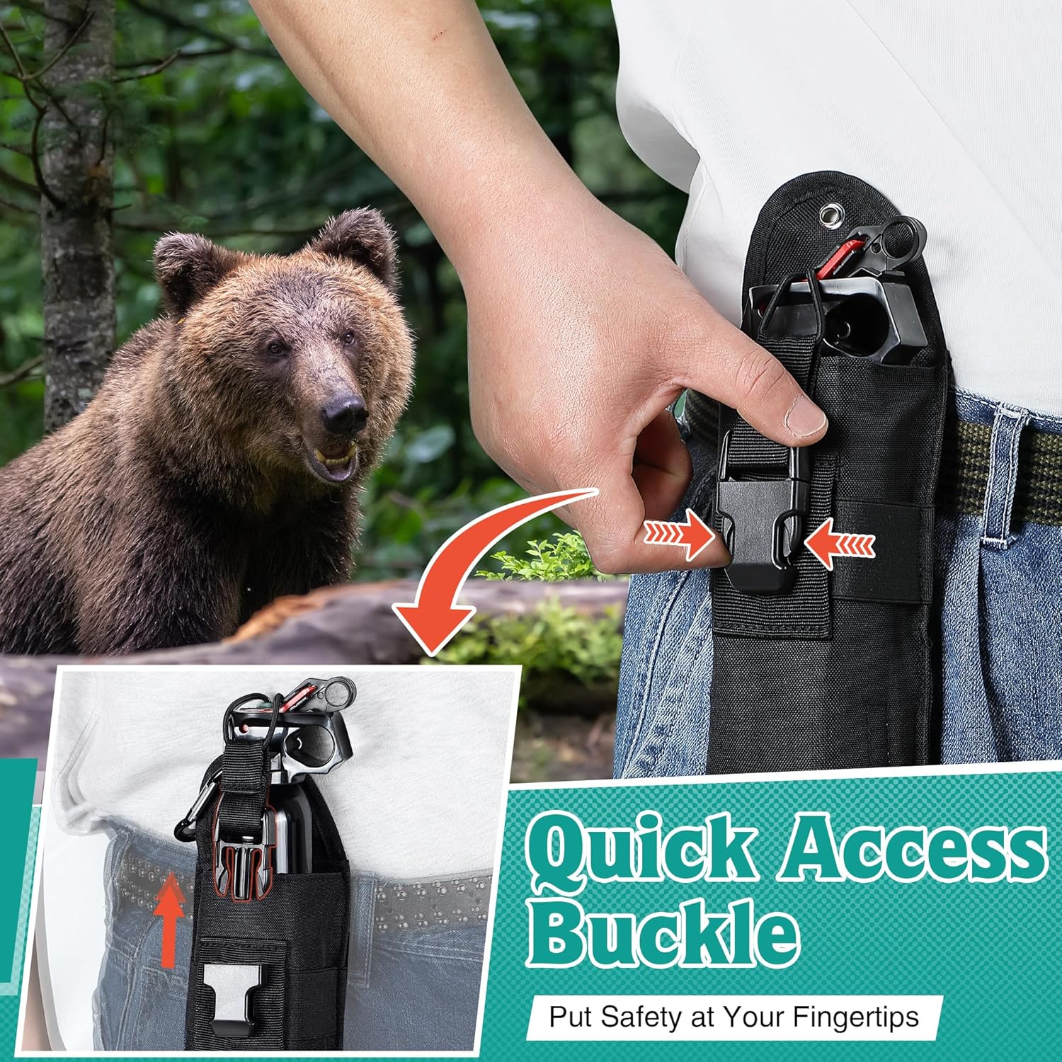 Quick Access Buckle: Our buckle system is designed for quick release, so you only need to push and the buckle will open instantly, ensuring your canisters is easily accessible. Whether you’re facing a sudden encounter or need to react quickly to any outdoor situation, the quick access feature of our holster puts safety at your fingertips, allowing you to focus on the adventure