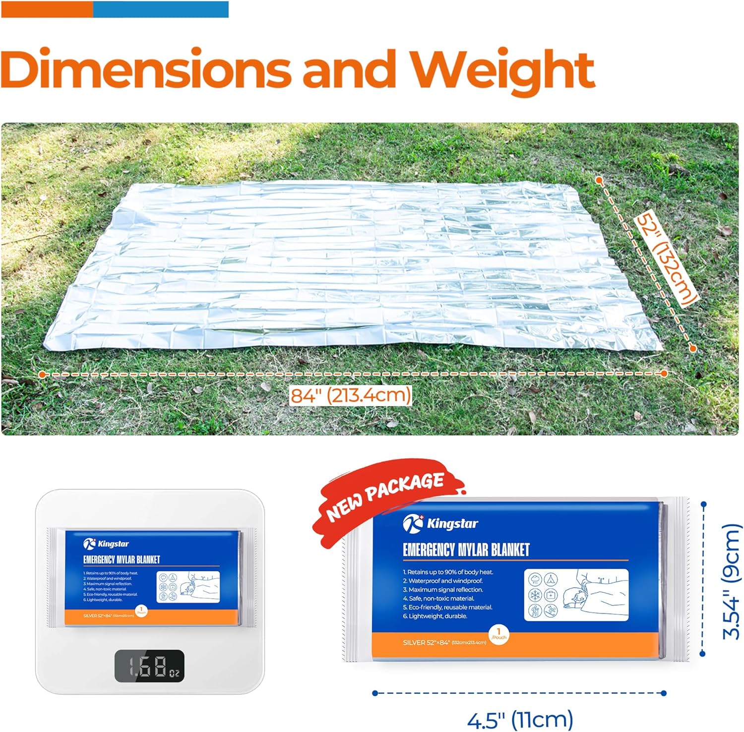 LARGE DUAL SIDED SURFACE: The emergency blanket size is 52″x84″, cover as much of head,torso,and limbs as possible,trapping body heat of human up to 6 foot 5 inch tall