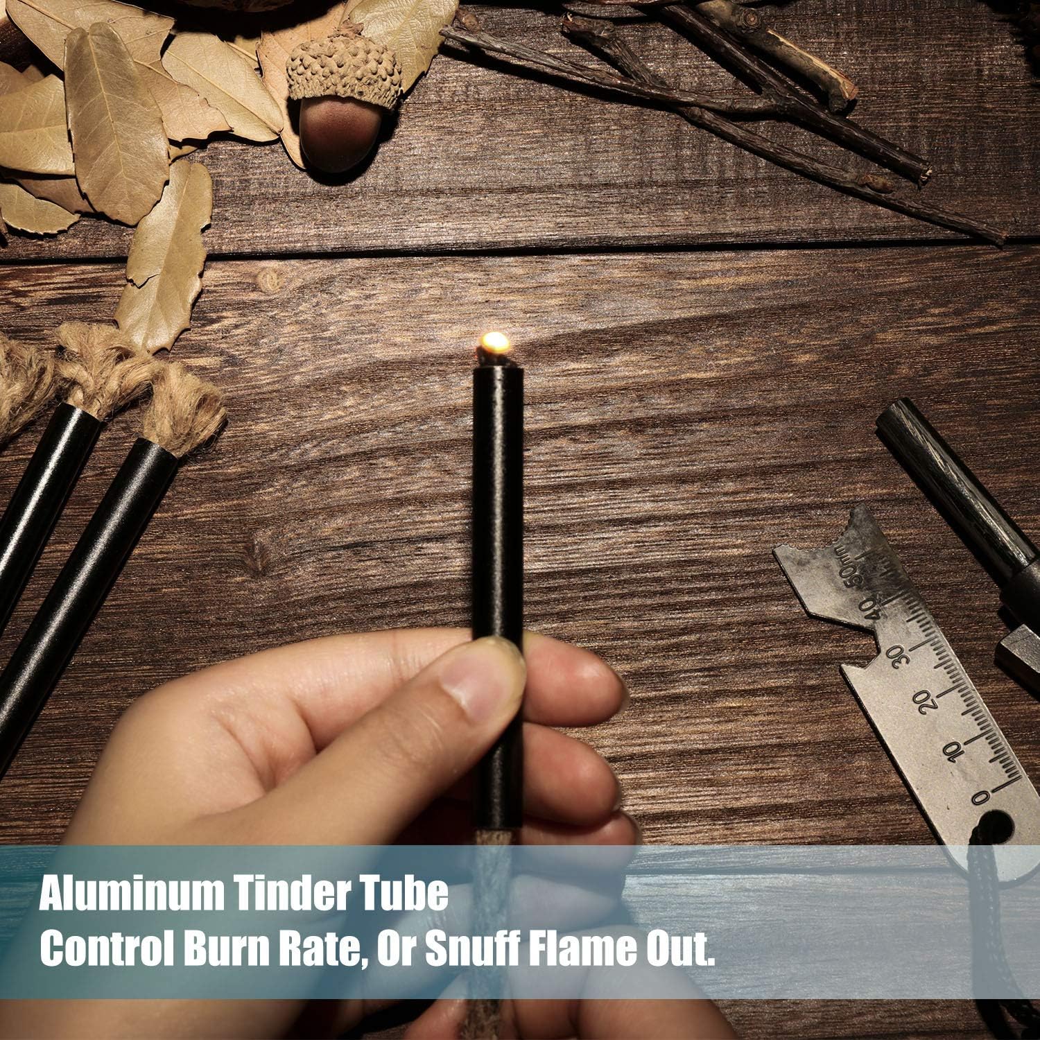 6 Pieces jute tinder tube waterproof wax wick fire starter accessory with aluminum sleeve for outdoor camping hiking trekking supplies