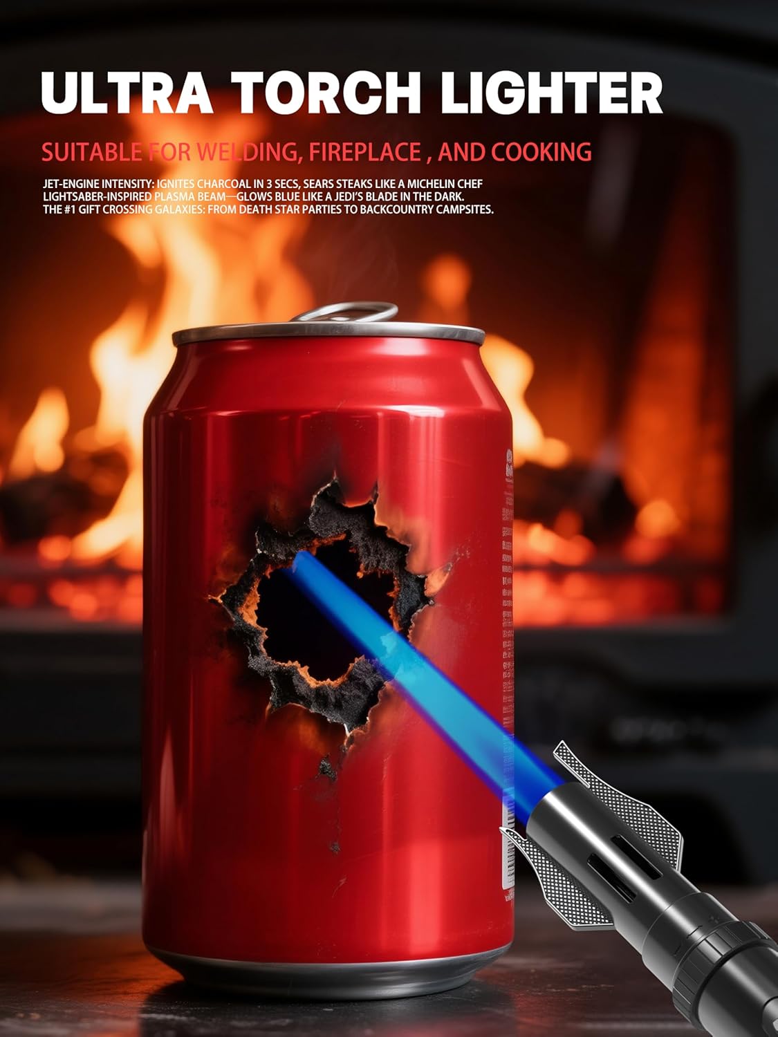 Jet Flame Windproof Lighter: This Cool Lighter can provide a 1300°C windproof flame, the extended flame of this Blow Torch Lighter can easily ignite firewood during camping, ignite fireplaces in cold weather, make caramel pudding in the kitchen, or light charcoal and add fire to grilled meat during BBQ; This Blow Lighter can even serve as a DIY tool to weld metal, making it a must-have for outdoor enthusiasts, cooking lovers, chefs, craftsmen, and campers
