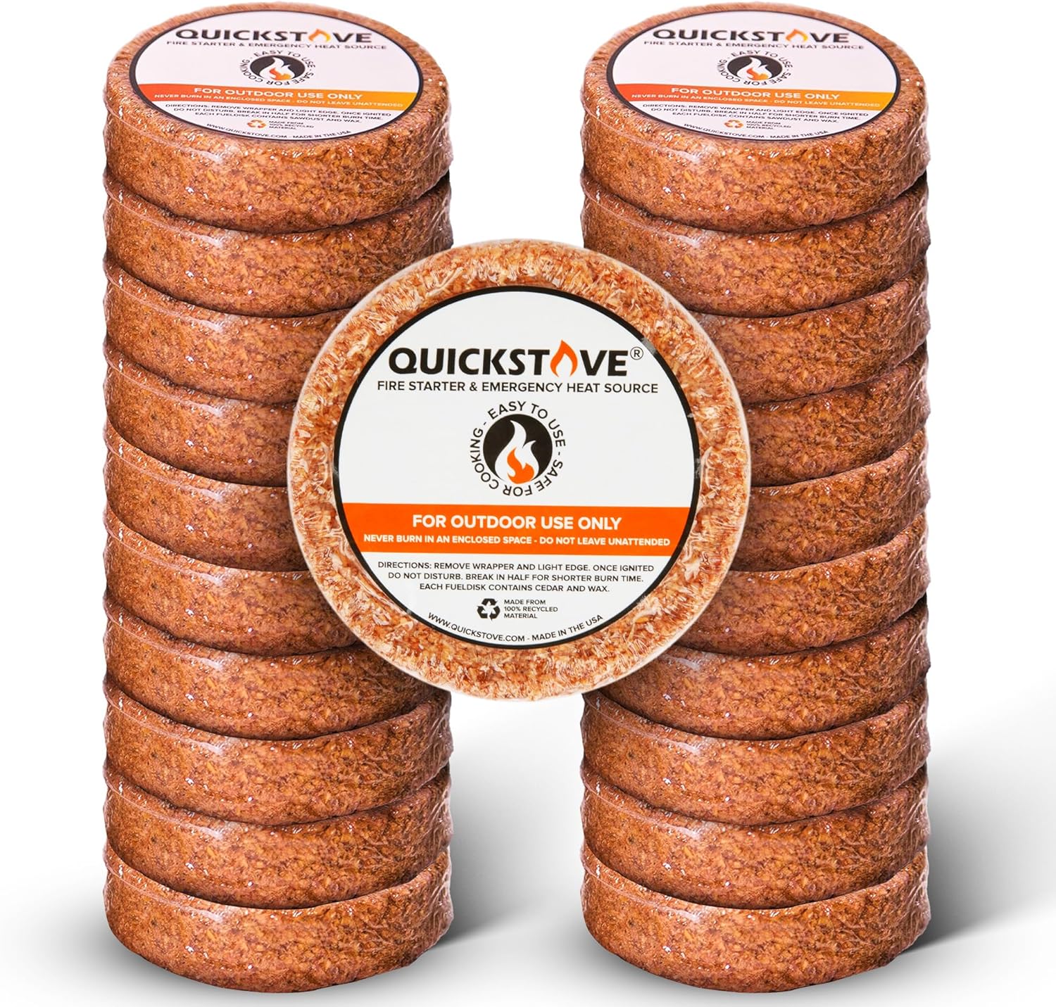 MULTI-PURPOSE 20-PACK FOR EMERGENCIES & EVERYDAY USE – Includes 20 reliable fire starter disks that double as emergency fuel sources for heating or cooking. Ideal for fireplace fire starter kits, camping fire starter gear, fire starters for survival, and outdoor wood burning fireplaces.