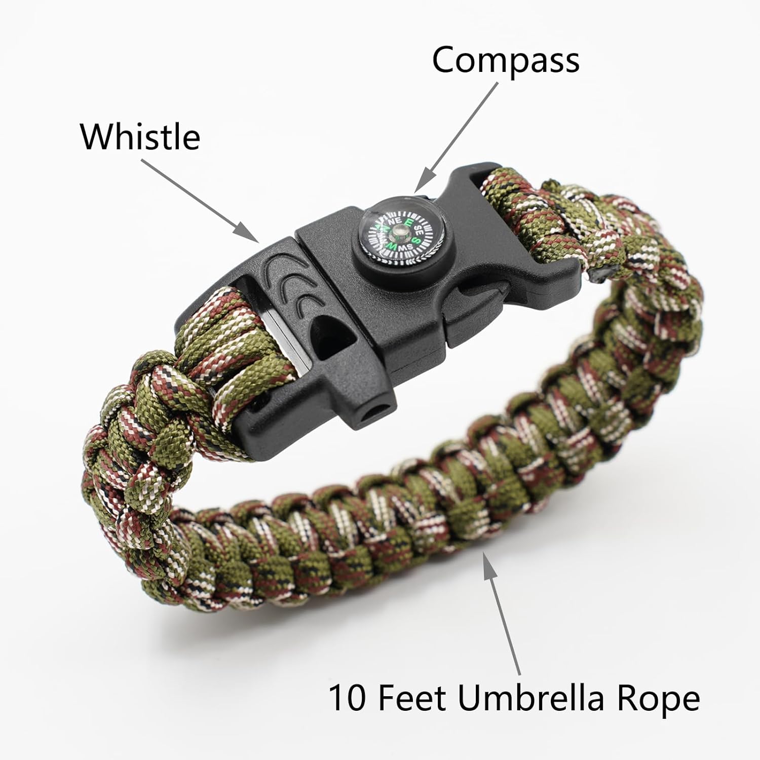The wristband comes with a basic compass and whistle function, which can help you while hiking or crossing.