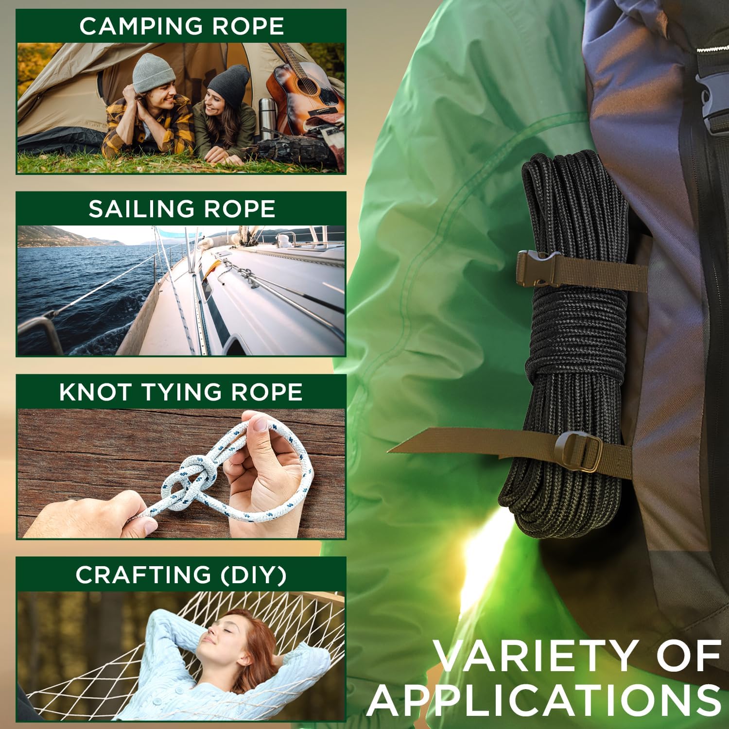 STRONG & DURABLE: Diamond braided rope has a tensile strength of 250 LB. The intricate weaving process ensures that the load-bearing capacity is evenly distributed across the entire rope which makes it suitable for a wide range of applications. Long-lasting.