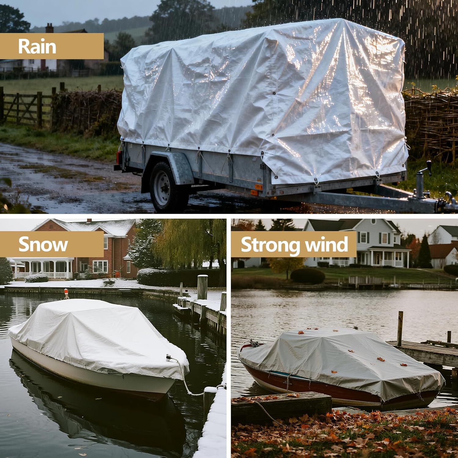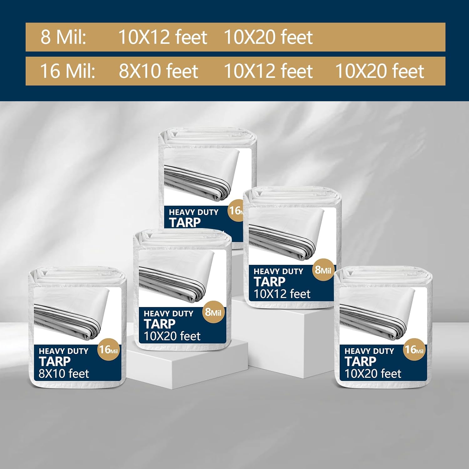 【FULL-SIZE TARP】 Our tarp is heavy duty 8 Mil/16 Mil tarp, more resilient than standard tarps in harsh weather, rain, wind, and UV exposure, more sturdy and durable.