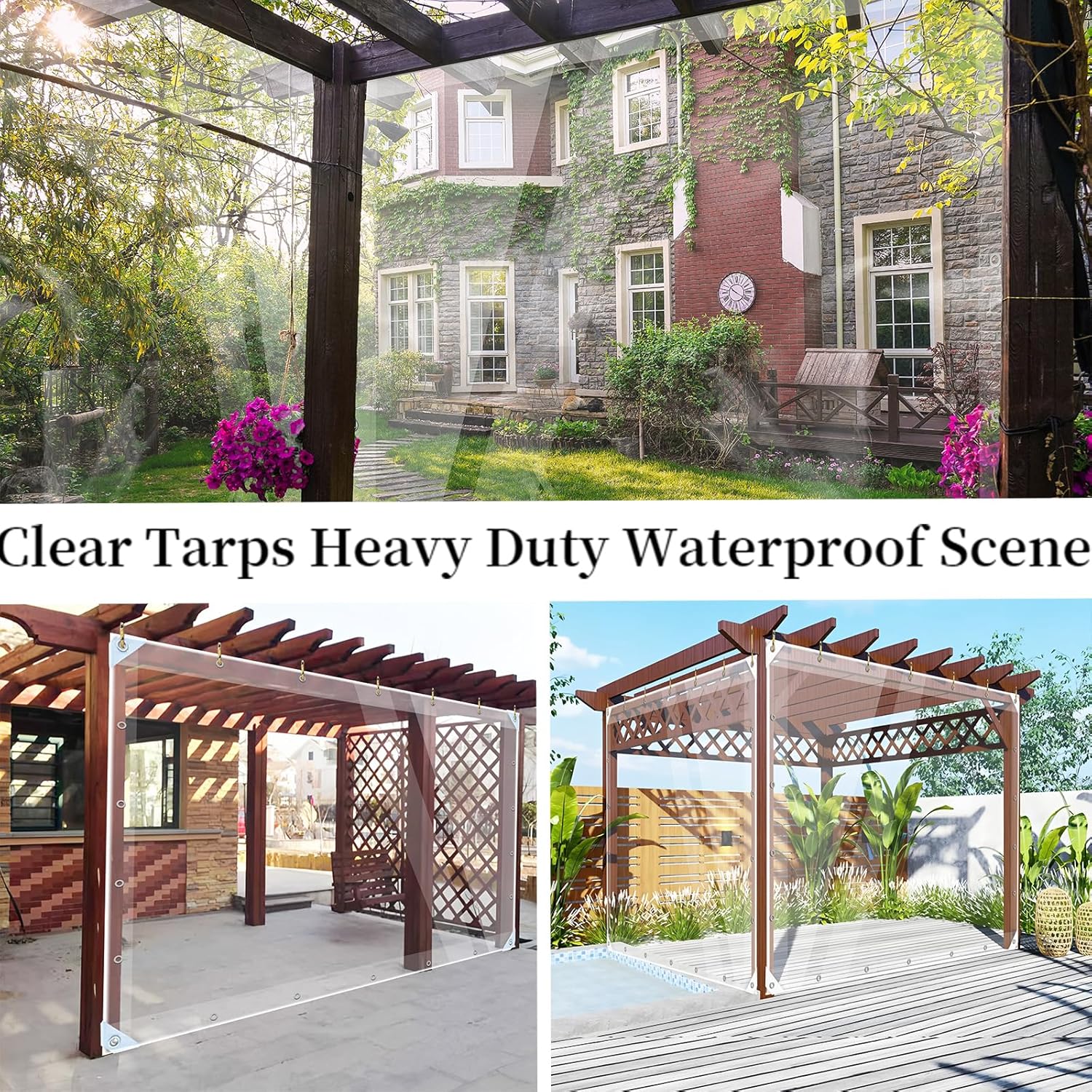 1:Clear Vinyl Tarp PVC Material.Tear Resistant Vinyl Tarpaulin Enclosure.Clear Plastic Tarps Heavy Duty Waterproof, Made Of PVC Material And A 14mil Thickened Version, Has Tear-Resistant Properties. PVC Material Has Good Waterproof Properties.