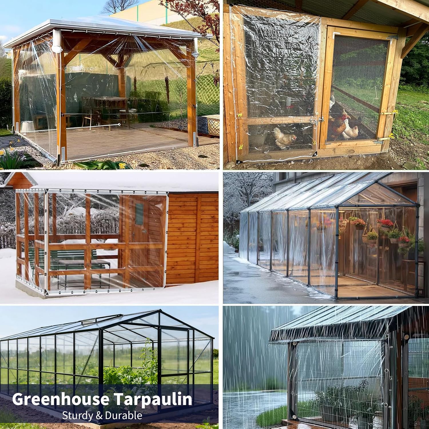6: Clear Vinyl Patio Enclosure Multi-Purposes:Our Waterproof Tarps Heavy Duty Outdoor Waterproof Shed Cover Is Suitable For Chicken Houses, Poultry Houses, Plant Greenhouses, Barns, Kennels, And Also Suitable For Diy, House Owners, Agriculture, Landscaping, Camping, Storage, Etc.