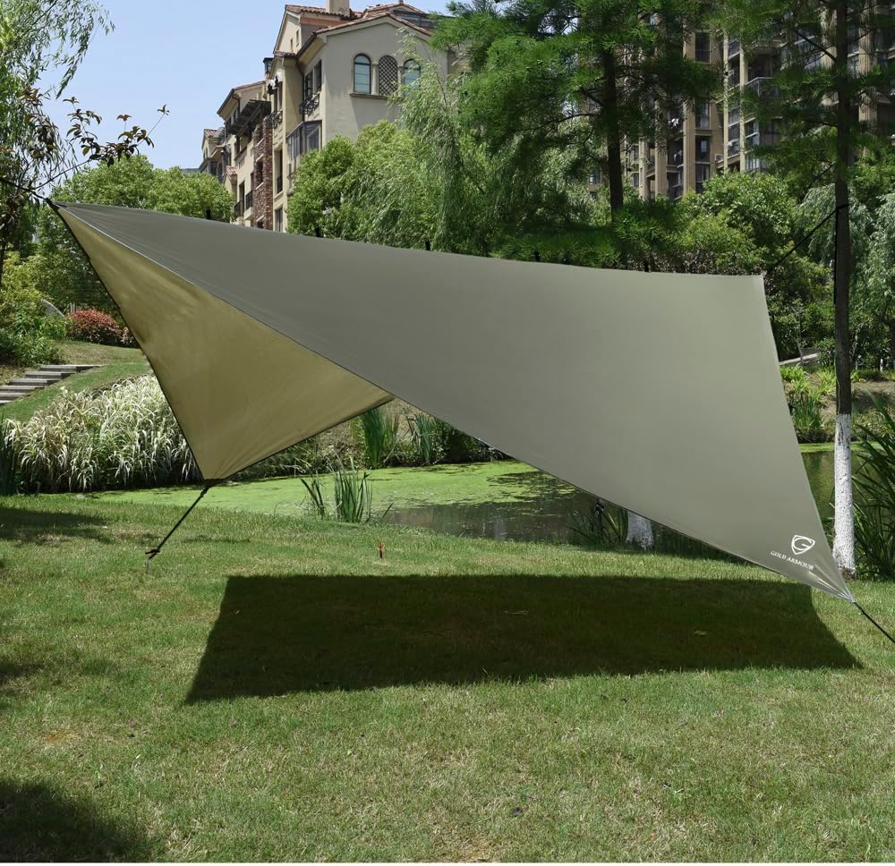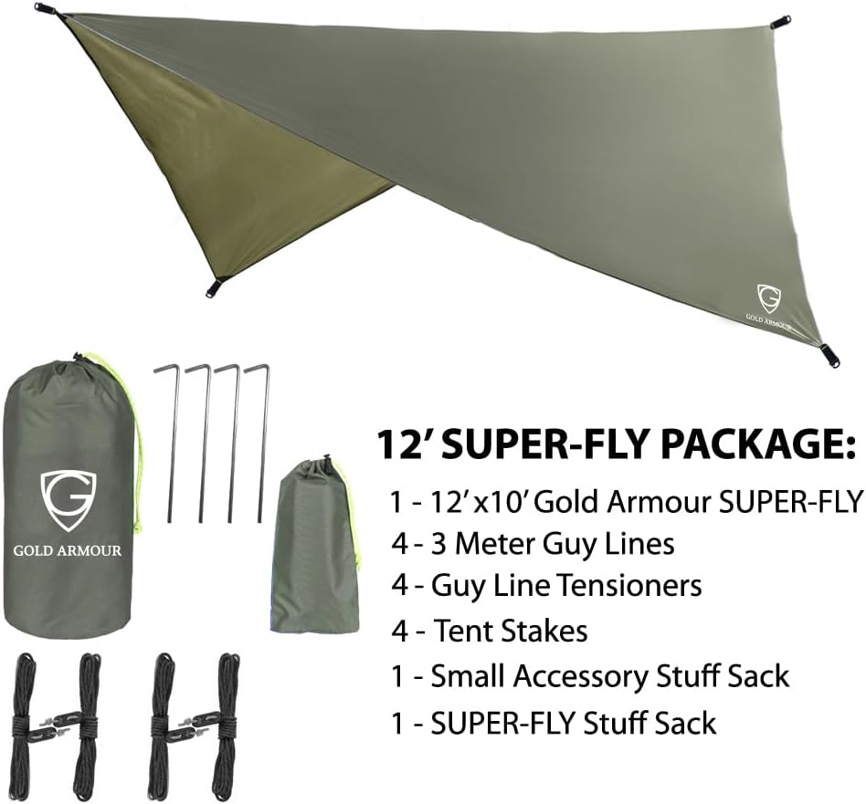 Gold Armour Rainfly Tarp For Hammock and For Tent, Camping Essentials Rain Fly Cover 12x10ft, Waterproof Lightweight Camping Accessories, Survival Camping Gear Camping Tent Accessories
