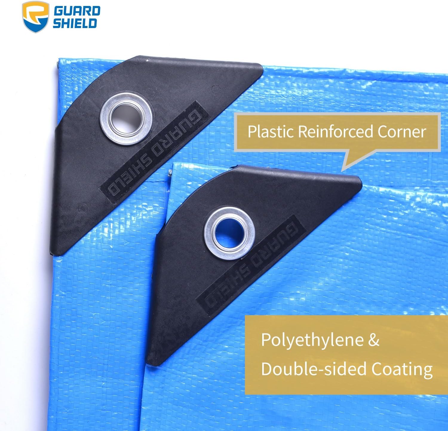 Can be used as weather and yard equipment cover. As outdoor used plastic tarp protection sheet for tent, pool, sandbox, boats, cars or motor vehicles. Providing camping shelter from the wind, rain or sunlight for campers. As roof for shade or emergency roof patch material, truck bed cover.