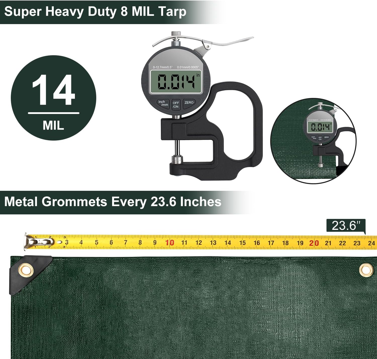 FINISHED SIZE: Our Heavy Duty Tarp with a thickness of 14 mils, when you choose your size, you get exactly that size, ensuring a perfect fit for your needs, and this heavy duty tarp waterproof has the strength and durability you need