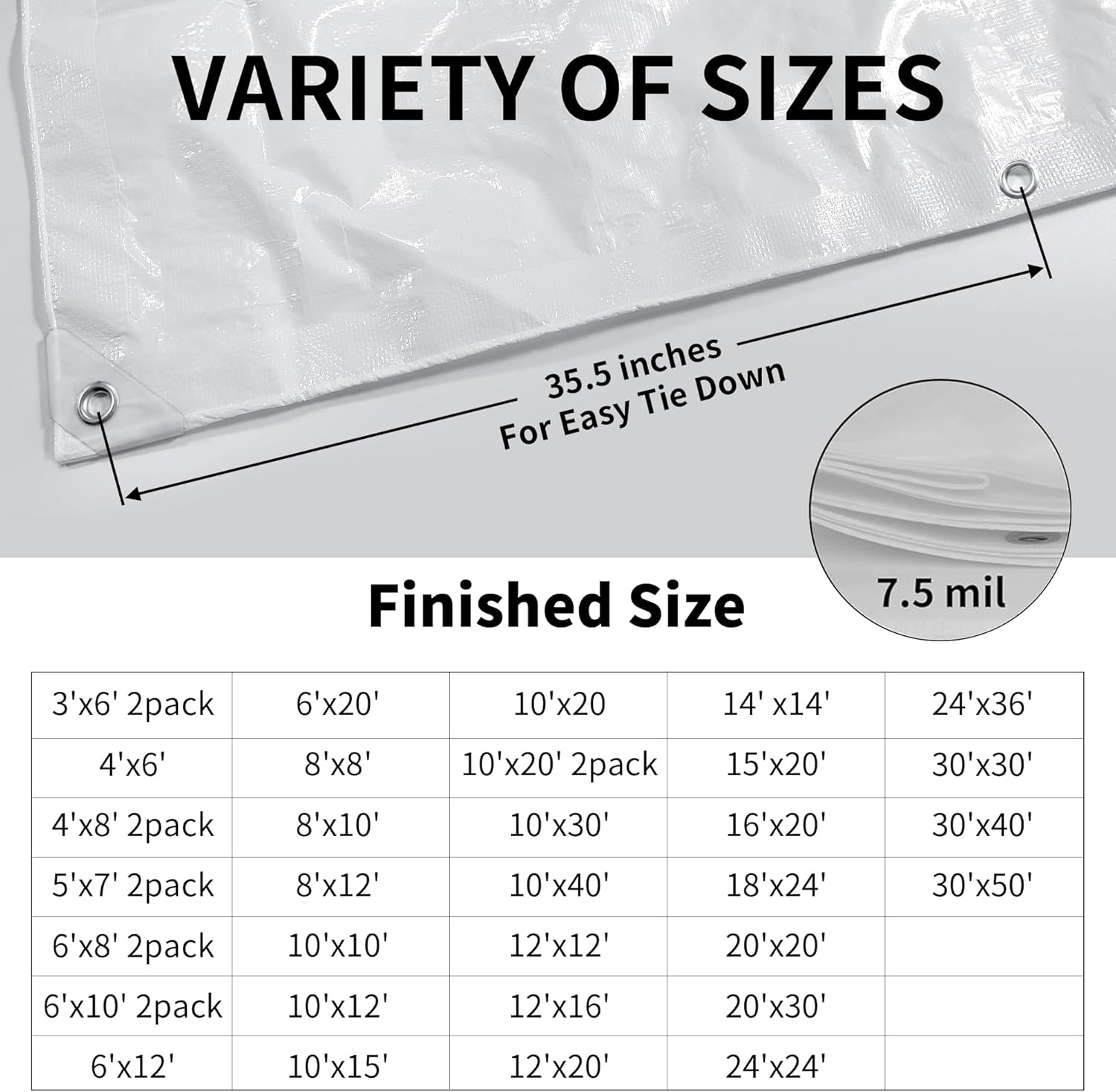 【High durable white tarp】TARPAL’s tarps use pure high-grade polyethylene and add anti-aging, tear resistant materials for longer life and durability.