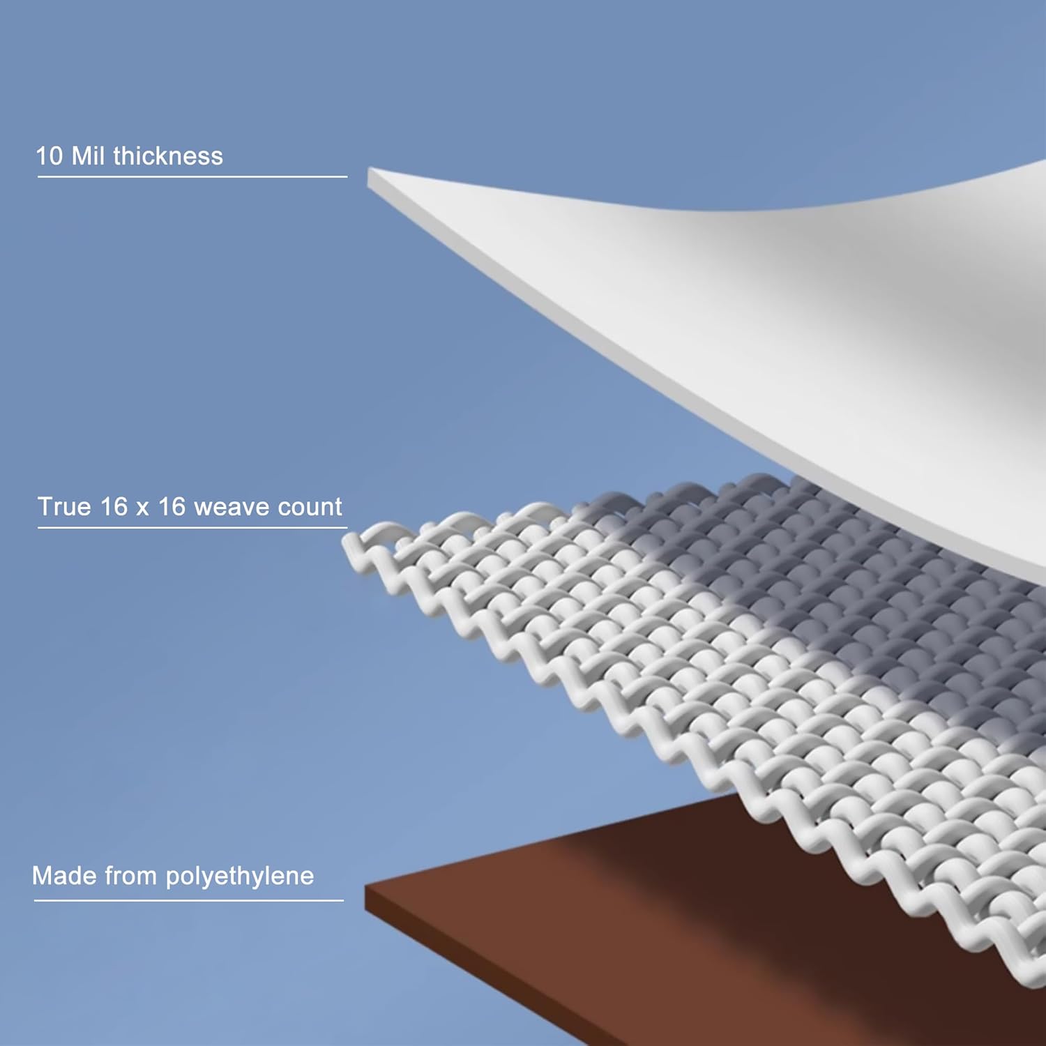 10 MIL THICK:The VHESS Heavy Duty Tarp is made of premium polyethylene material with a thickness of 10 mils. Tarps finish size 10×12 feet, more sizes available. This silver-brown tarp provides exceptional strength and durability to meet all of your needs.