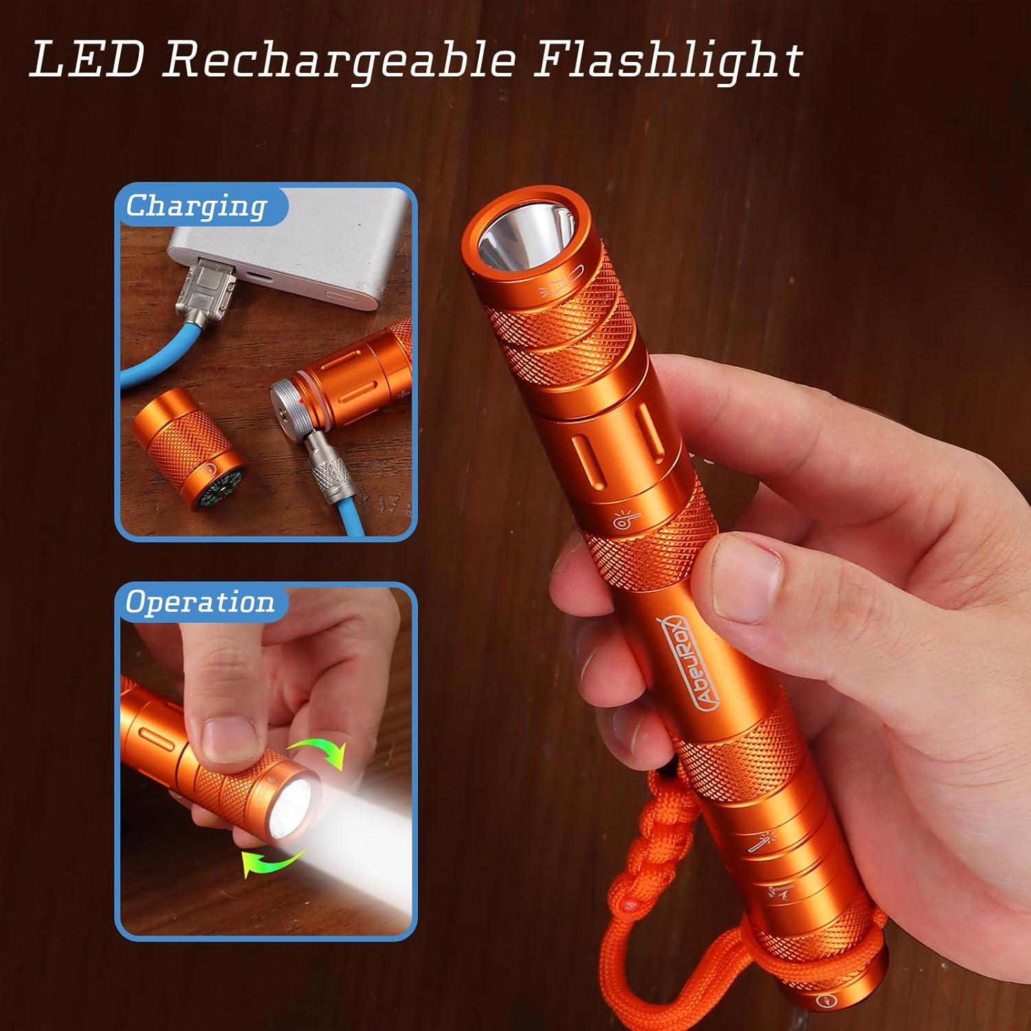 【What’s in the Box】: 1 x Camping Survival Kit Multitool, 1 x 14250 lithium rechargeable battery, 1 x USB-C Charging cable, 5 x O-rings, 1 x Paracord lanyard, 1 x Solid plastic tube Plastic tube