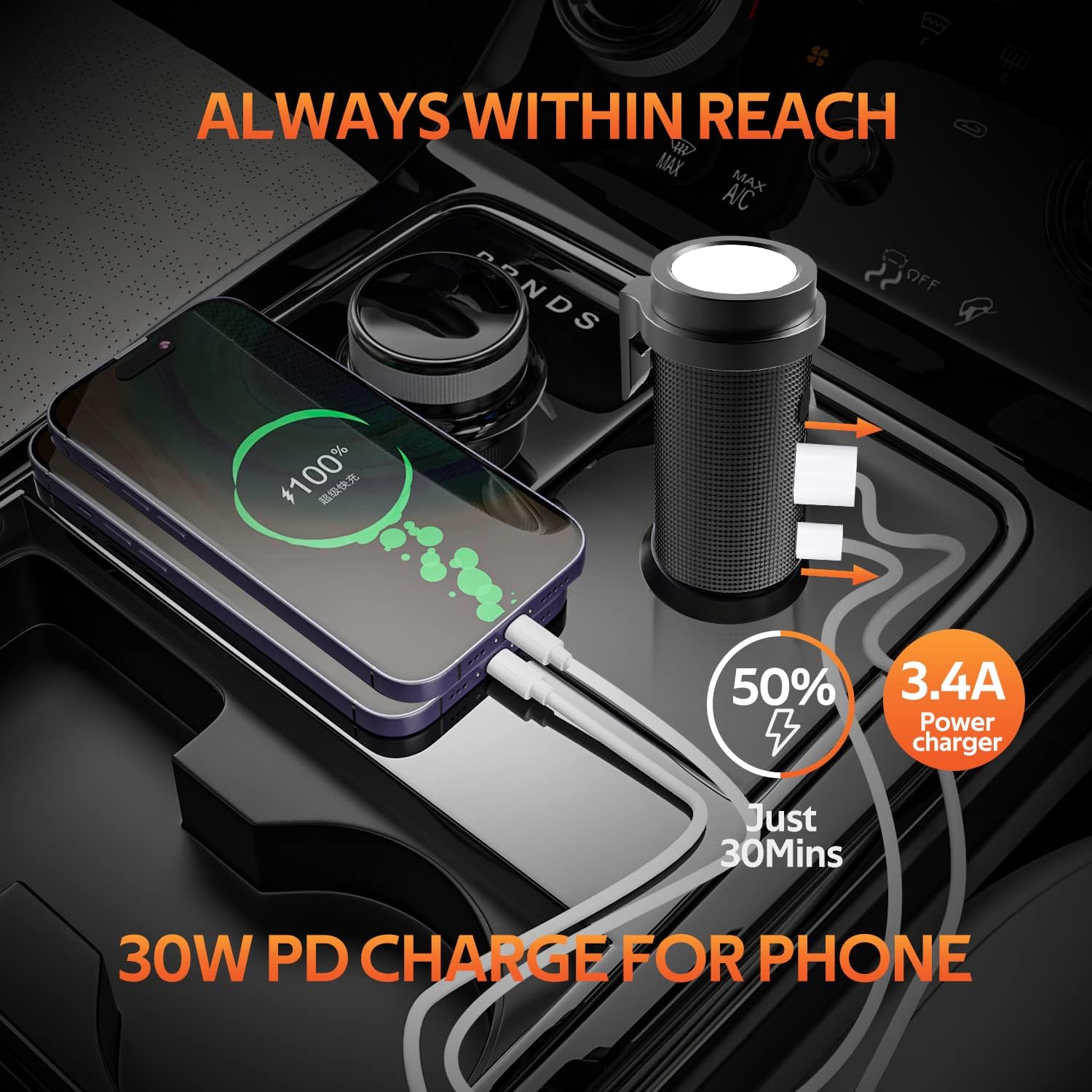 Dual Port USB Type C Car Charger 30W- 5 x faster charging speed for the smart charging ports, for the USB devices that do not support smart fast charging, adaptively allocate the largest current to achieve fast charging. The USB car charger is compatible with Samsung Galaxy S22 S21 S10 Plus S7 S10e S9 Note 8, LG, GPS,iPhone 13 12 11 Pro Max X XR XS 8 Plus 7s 6s, iPad, etc.