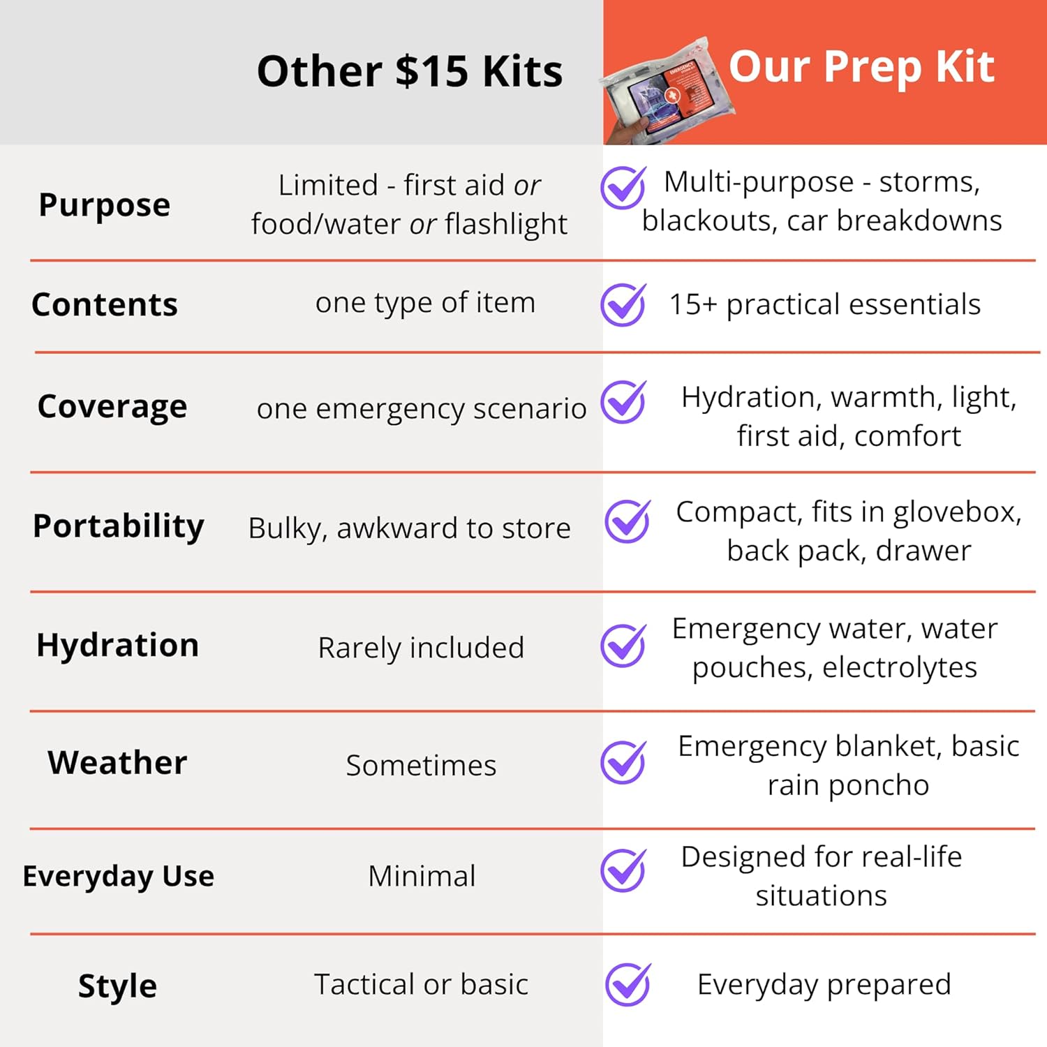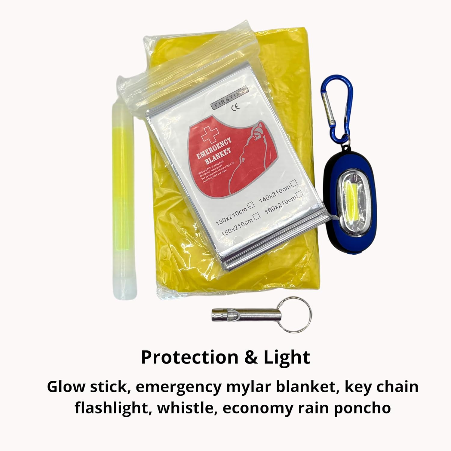 ✅ Covers Critical Emergency Needs – Each survival kit provides the essentials for hydration, warmth, visibility, hygiene, and first aid. Designed to help you stay safe and comfortable when storms, outages, or natural disasters disrupt everyday life.