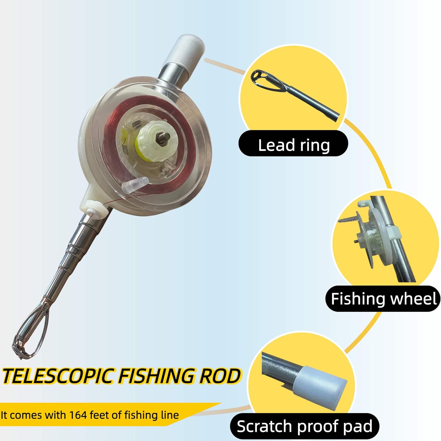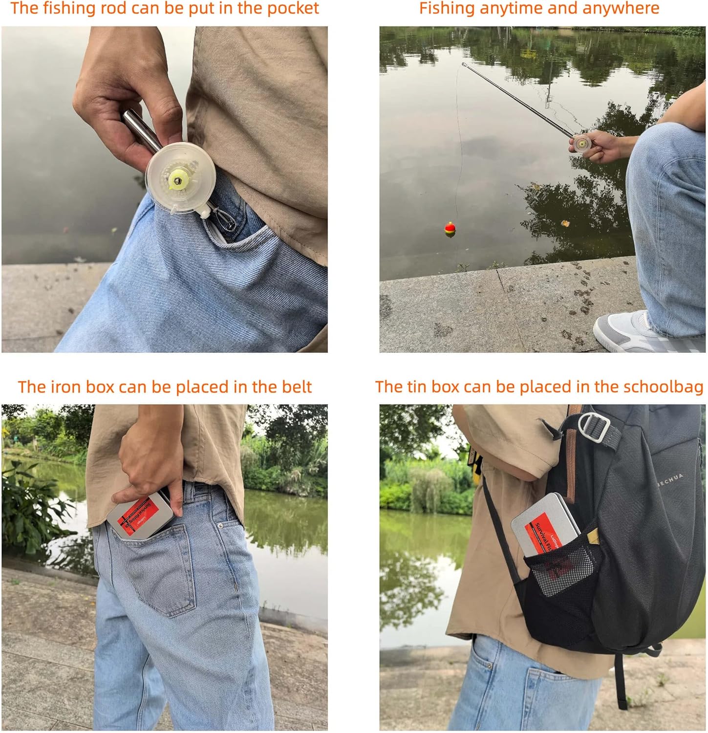 Telescopic fishing rod reel combination: Composed of a retractable mini fishing rod and a fishing wheel. It also includes a professional front wire loop that can be used with fishing reels to ensure the smooth retraction of fishing lines.