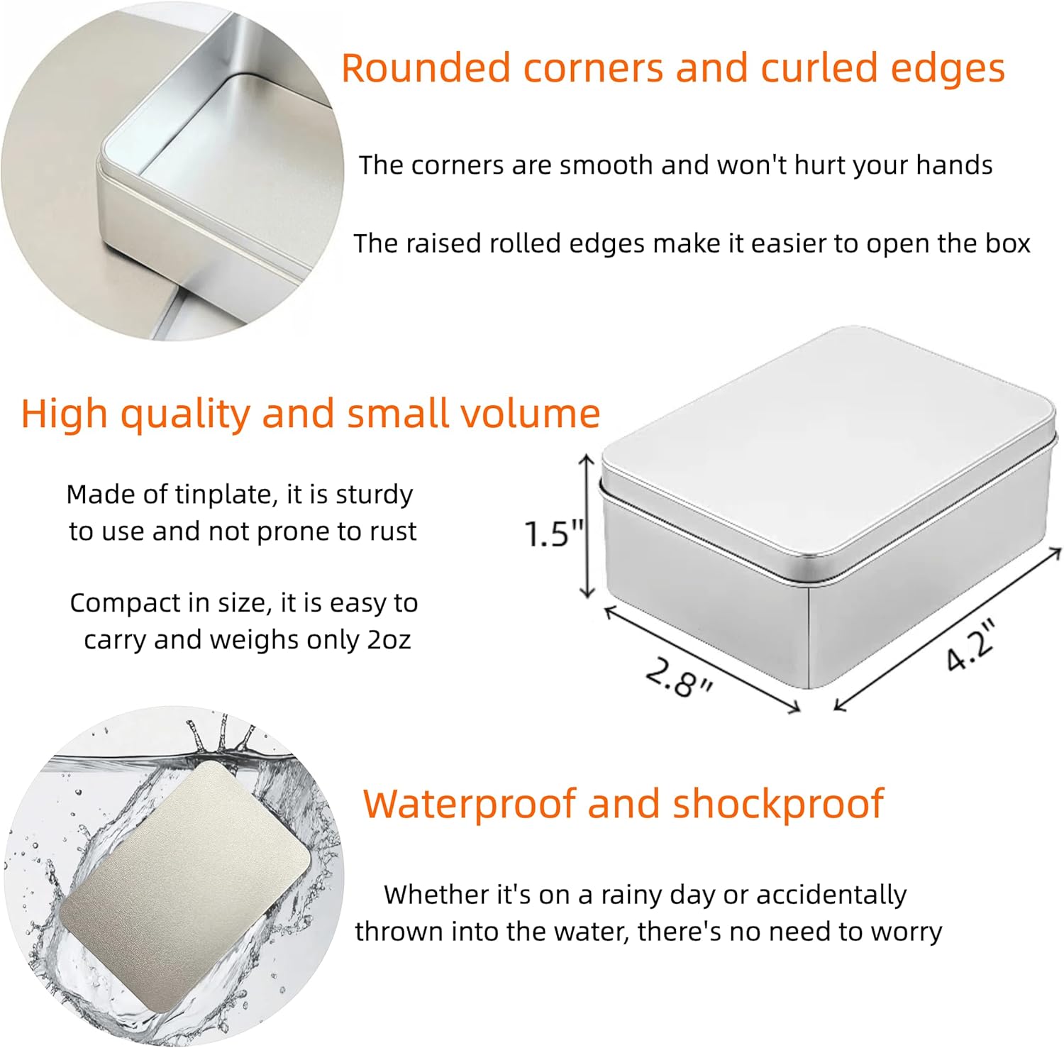 Designed jointly by survivalist masters and fishermen: 4.2×2.8×1.5-inch rust-proof metal box with lightweight durability. Its small size makes it an ideal choice for personal life-saving bags, insect-proof bags and emergency fishing devices, designed to meet the needs of lure fishing in the United States