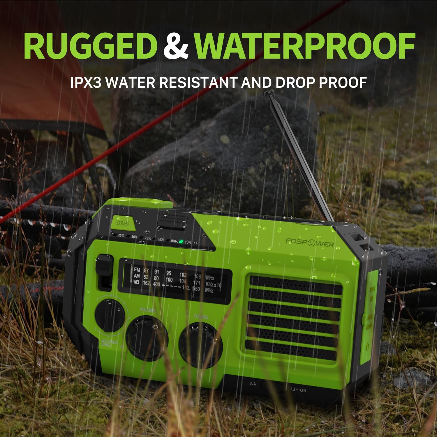 [19240mWh (5200mAh) POWER BANK TO KEEP DEVICES POWERED] The FosPower FOSPWB-2419 solar crank radio is equipped with a 19240mWh (5200mAh) power bank that is capable of supporting long-time radio operation. If you are in the outdoors or there is a power outage, the power bank will keep your USB devices charged in case of an emergency.
