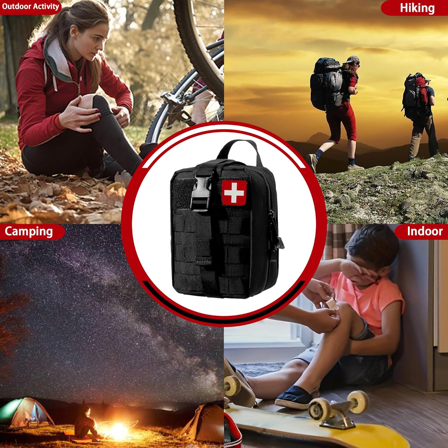 【✅】293-Component Emergency Response Ecosystem→ Military-spec 800D Oxford construction with dual YKK storm zippers→ Rapid-access hook-and-loop panel organizes: trauma shears, splinter forceps, adhesive bandages, self-adhering bandages, emergency rain poncho, nitrile gloves, survival blanket, illustrated response guide, cleaning wipes, tape, gauze pads, safety pins→ Each element precision-curated for scenarios where minutes determine outcomes