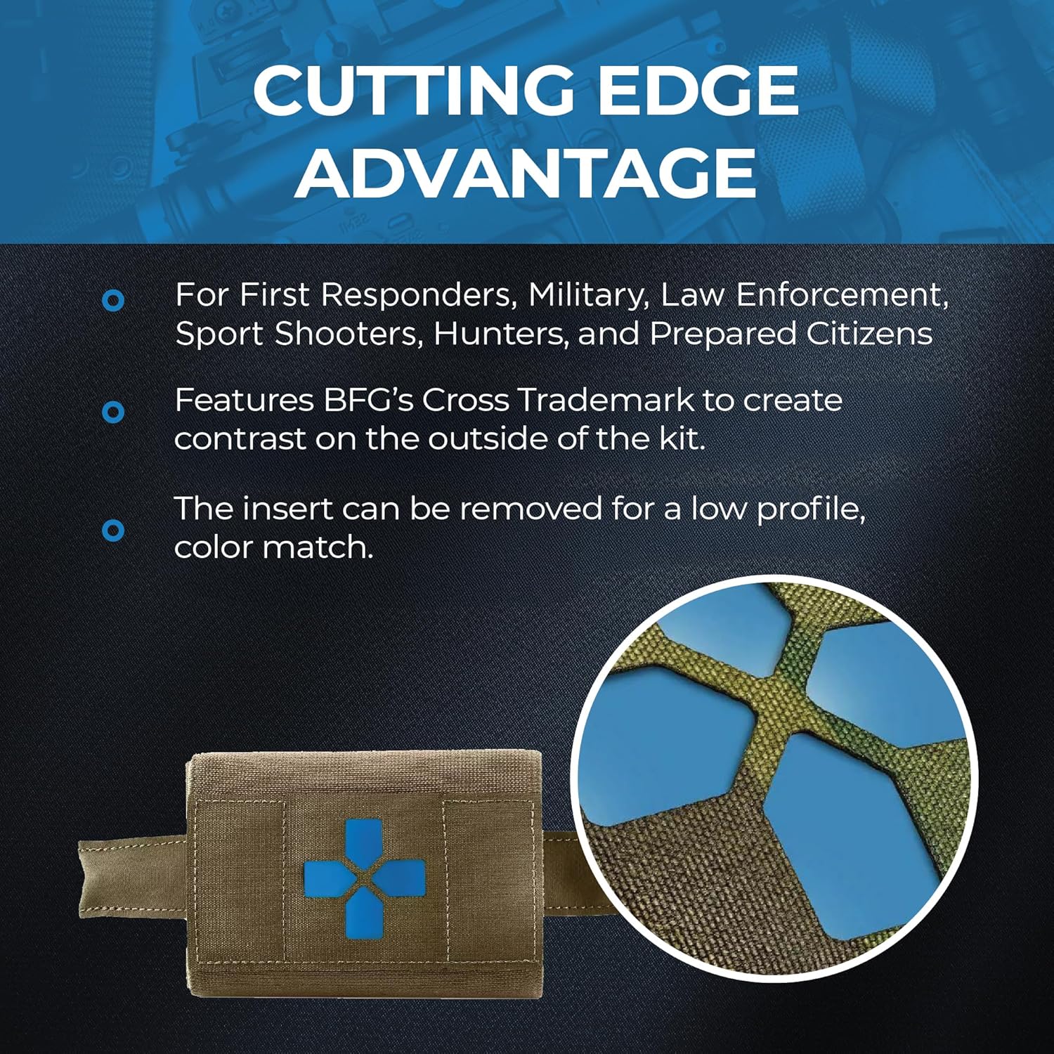 Features a laser-cut medical cross with a removable blue insert for quick identification. Always know where your lifesaving gear is when seconds matter.