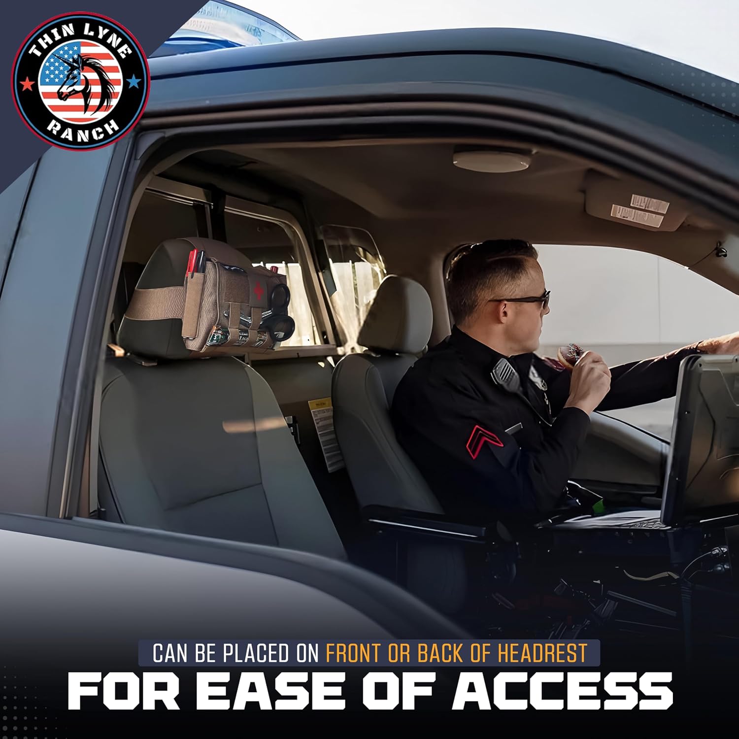 Compact Versatility: Product includes headrest mount, slide in insert, and red cross patch. NO MEDICAL SUPPLIES ARE INCLUDED; this makes it perfect to customize the medical portion to your personal needs, whether it be an emergency trauma kit or simple first aid supplies; this kit is ready to respond at a moment’s notice.