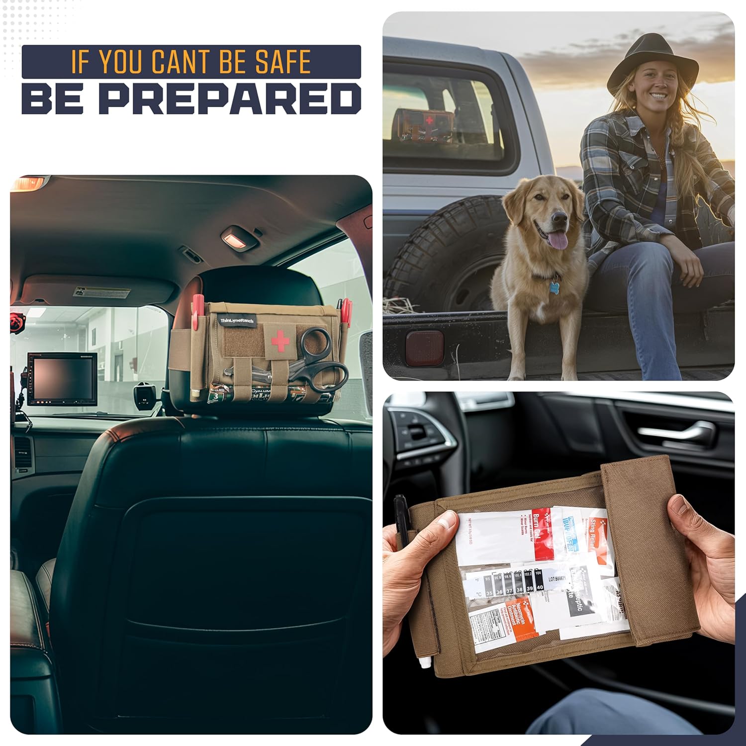 Instant Accessibility: Featuring a rip away ifak design, our Tactical Vehicle Headrest Trauma Kit ensures you have quick and easy access to essential lifesaving supplies, allowing first responders and outdoor enthusiasts to swing into action without delay, making this kit a necessity in every emergency situation.