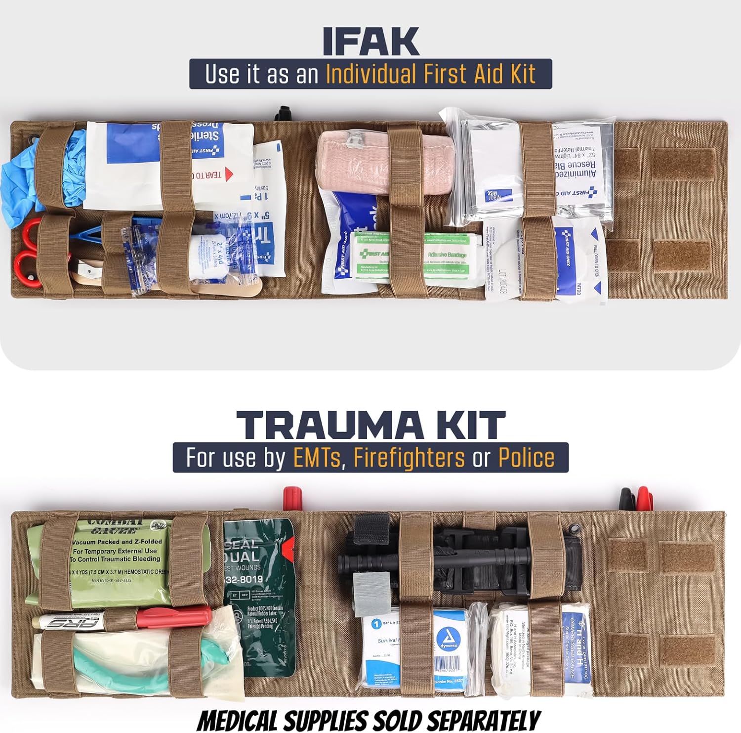 Tailored for Efficiency: Designed with your on-the-go lifestyle in mind, our ifak pouch molle configuration allows seamless integration into existing gear setups; whether hitting the trails or patrolling city streets, you can count on this tactical first aid kit for precise and efficient medical application.