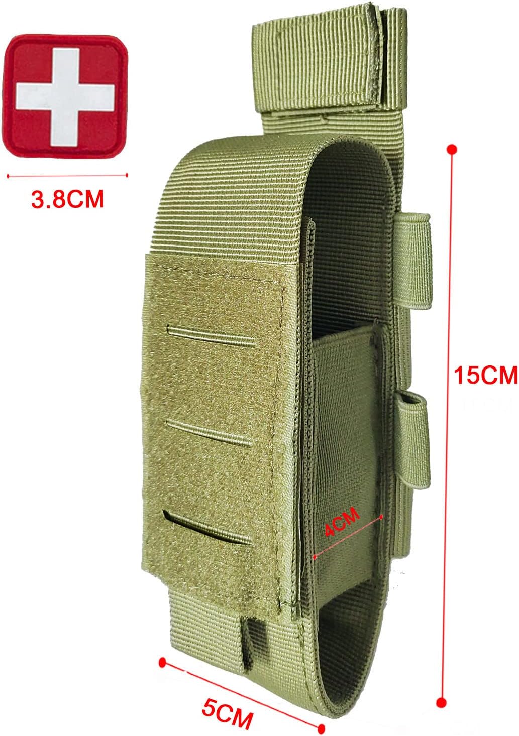 Nice little holder. Tourniquet Holder is fit most of the popular tourniquets out in the marketplace. With elastic sides to conform to the different thickness of tourniquets(CAT, RECON, SAM XT),And you also carry an additional pack of hemostatick gauze in this holder, and you could also clip a knife or a rescue tool to the elastic side.Size:5*15 cm.Great product.Easy to install and nice material.The Design is really well made :It holds your shears, tourniquet,pen and knife with no issues.Everything fits nice and tight no chance of falling out.Very convenient holder. Exactly what you needed/expected. The Front Velcro laser cut molle system is well design. Well made, and the attachment system is somewhat multifunctional(you would have preferred this ).This pouch has button snaps on the back so it’s also easy to put on and take off.Molle Tourniquet Holder:Very easy to hold tourniquet,Shears,Pens snugly and mounts securely to MOLLE. Easy comfortable to wear on a tactical belt and easy to install on any bag.This is a great addition to any duty belt or vest.( The pouch can be attached on horizontally and vertically.)Works perfect,durable enough, it stands up to wear and tear.Ideal for Tactical, Military, Police, Fire Personnel ,Law Enforcement, EMT, and Rescue.