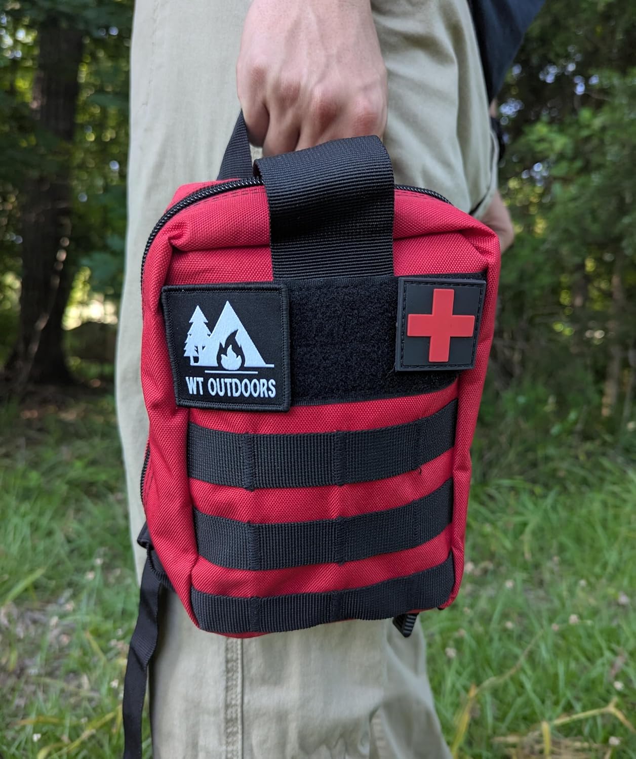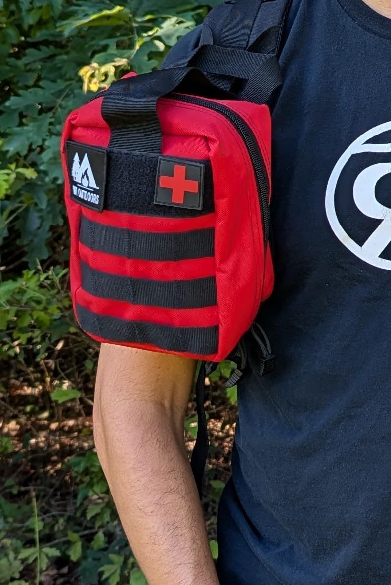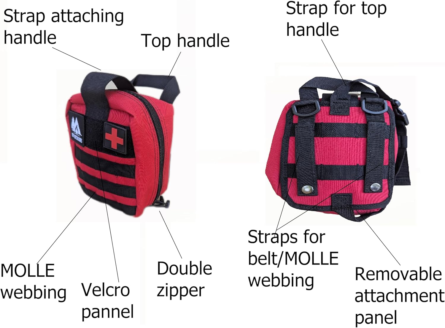 TACTICAL CONSTRUCTION: MOLLE compatible medical bag in red and black colorway, built with durable materials for field use and emergency situations