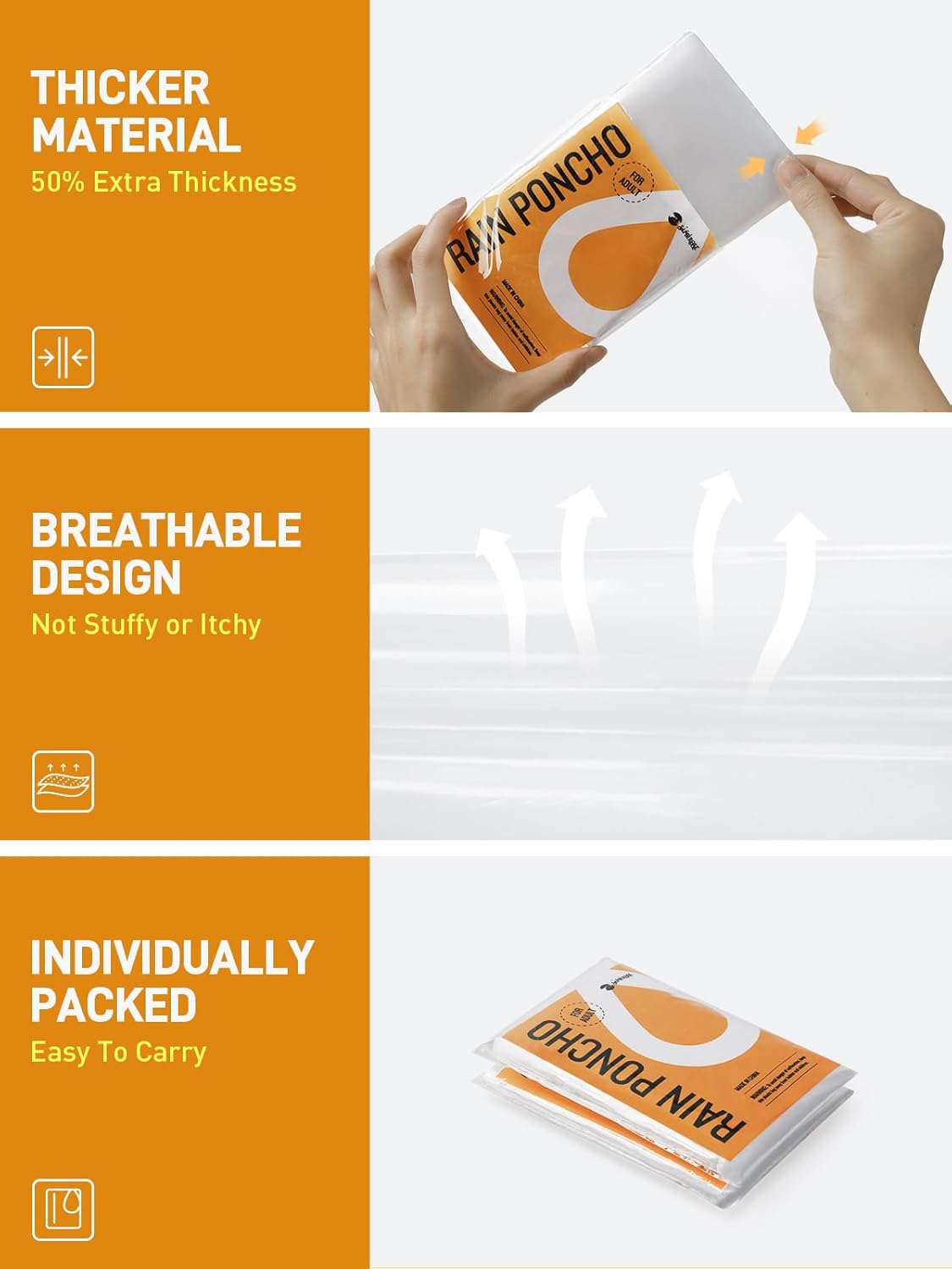 Customers find the poncho keeps them dry in mild rain and works well for outdoor activities like baseball games and amusement parks. The poncho fits comfortably and is good value for money, with one customer noting it extends to mid-thigh length. While some customers find it durable, others report it rips easily. The material thickness receives mixed feedback, with several customers describing it as super thin.