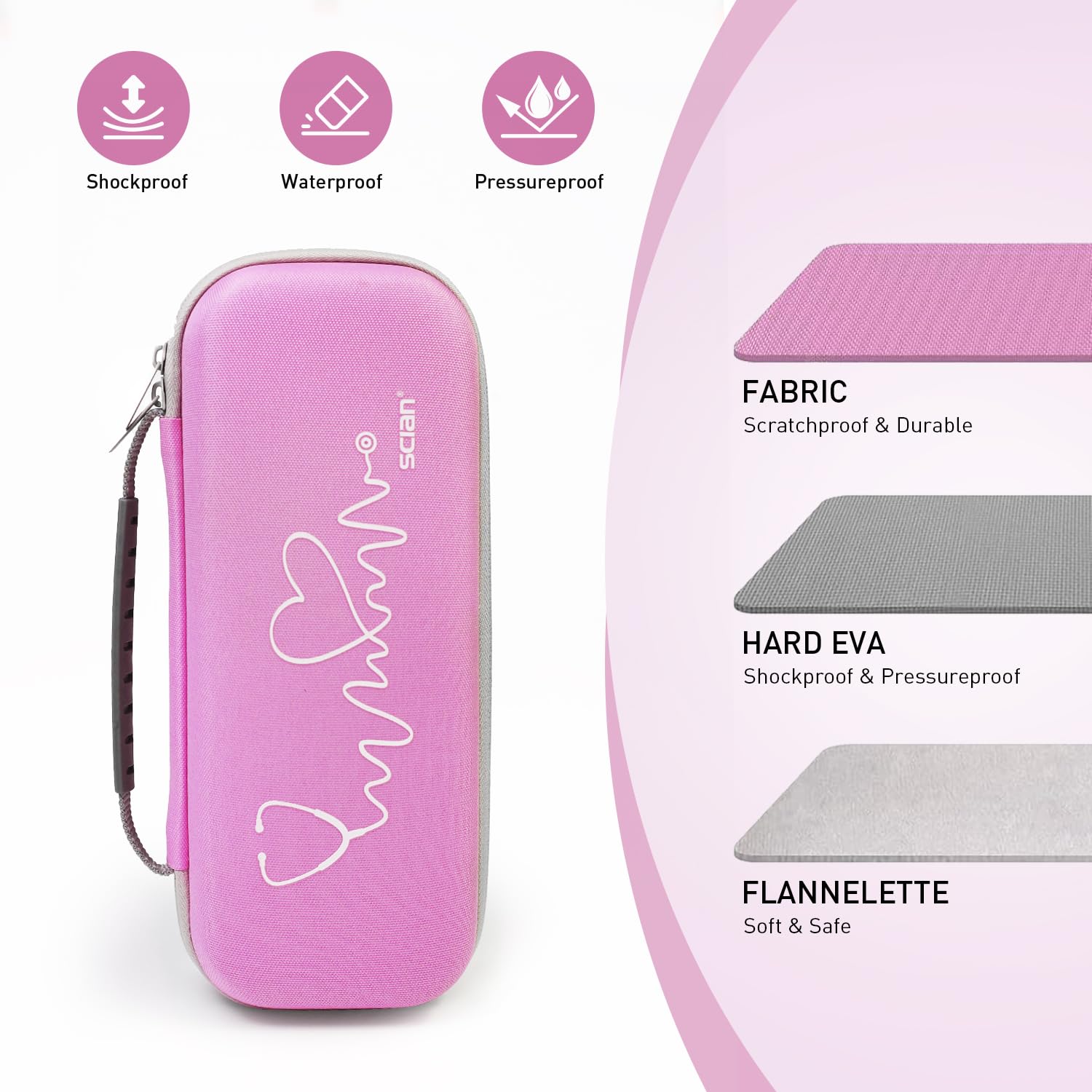 Premium Quality: Our stethoscope case crafted with durable EVA and nylon materials, making it shockproof, waterproof, and stylish. It’s complemented by a soft interlayer and features a fluffy, anti-static fabric lining that cushions against impacts and scratches, safeguarding your stethoscope and medical supplies wherever you go